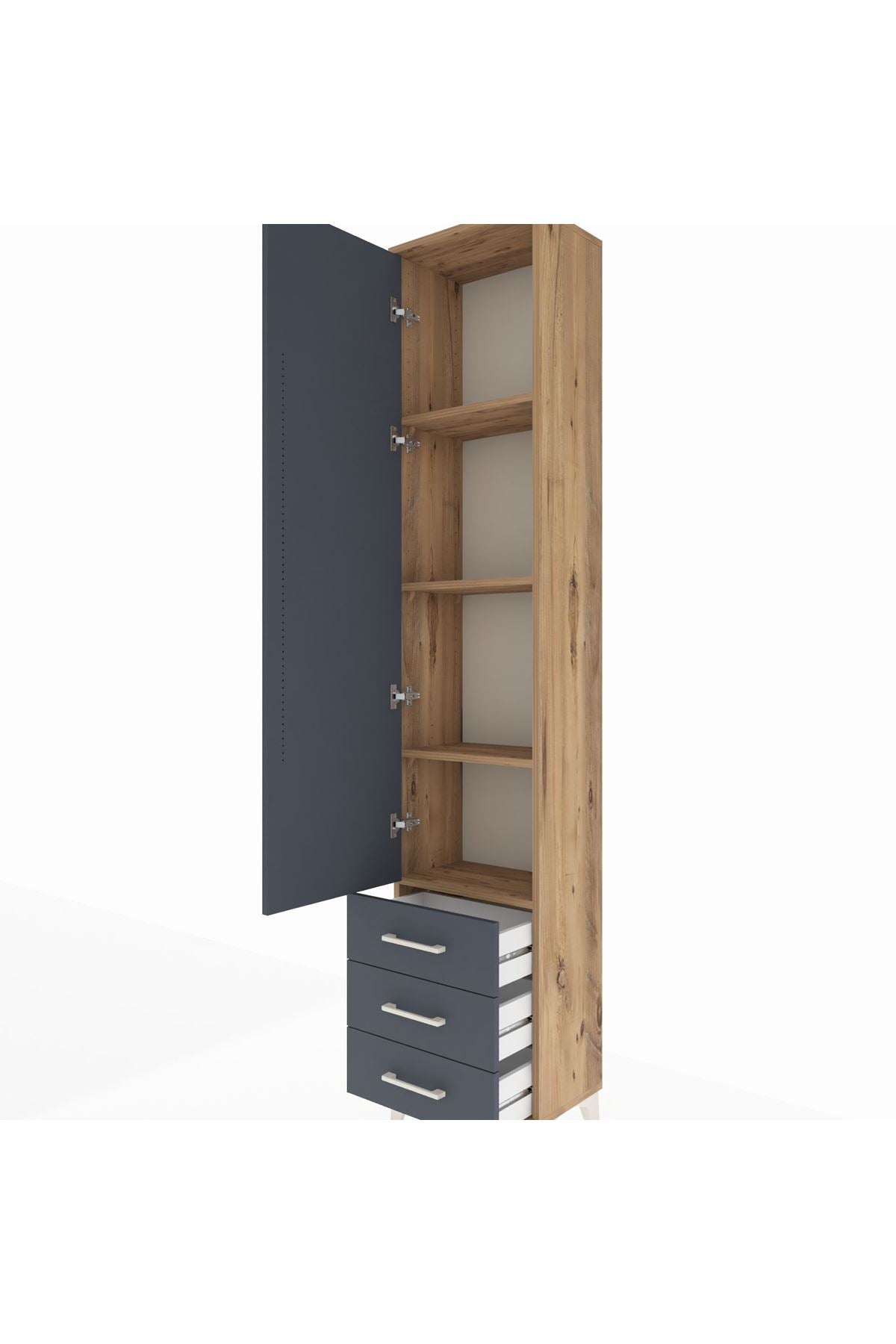 Arges Dolap 4 Raflı 3 Çekmeceli Tek Kapaklı 44x30x221 Çam-Antrasit
