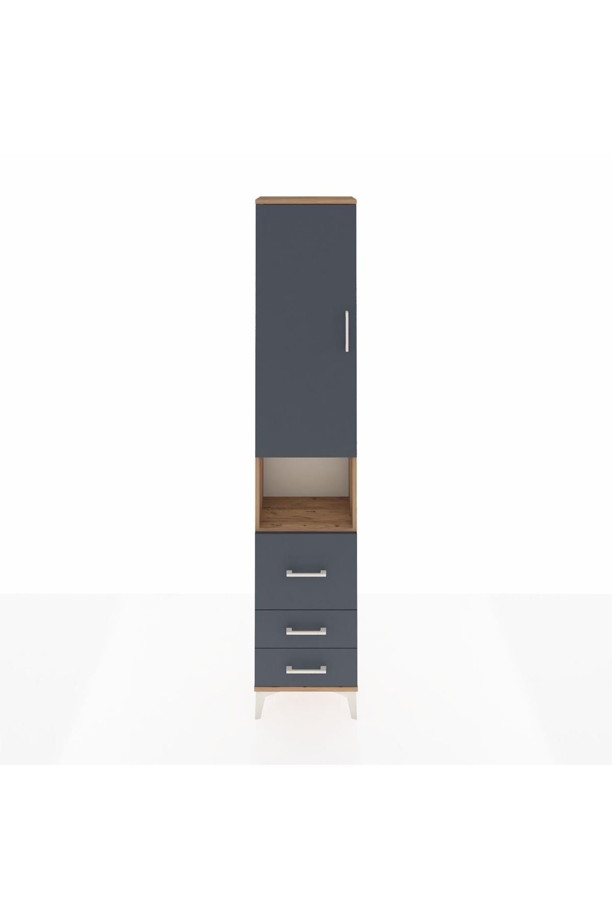 Arges Dolap 4 Raflı 3 Çekmeceli Tek Kapaklı 44x30x221 Çam-Antrasit