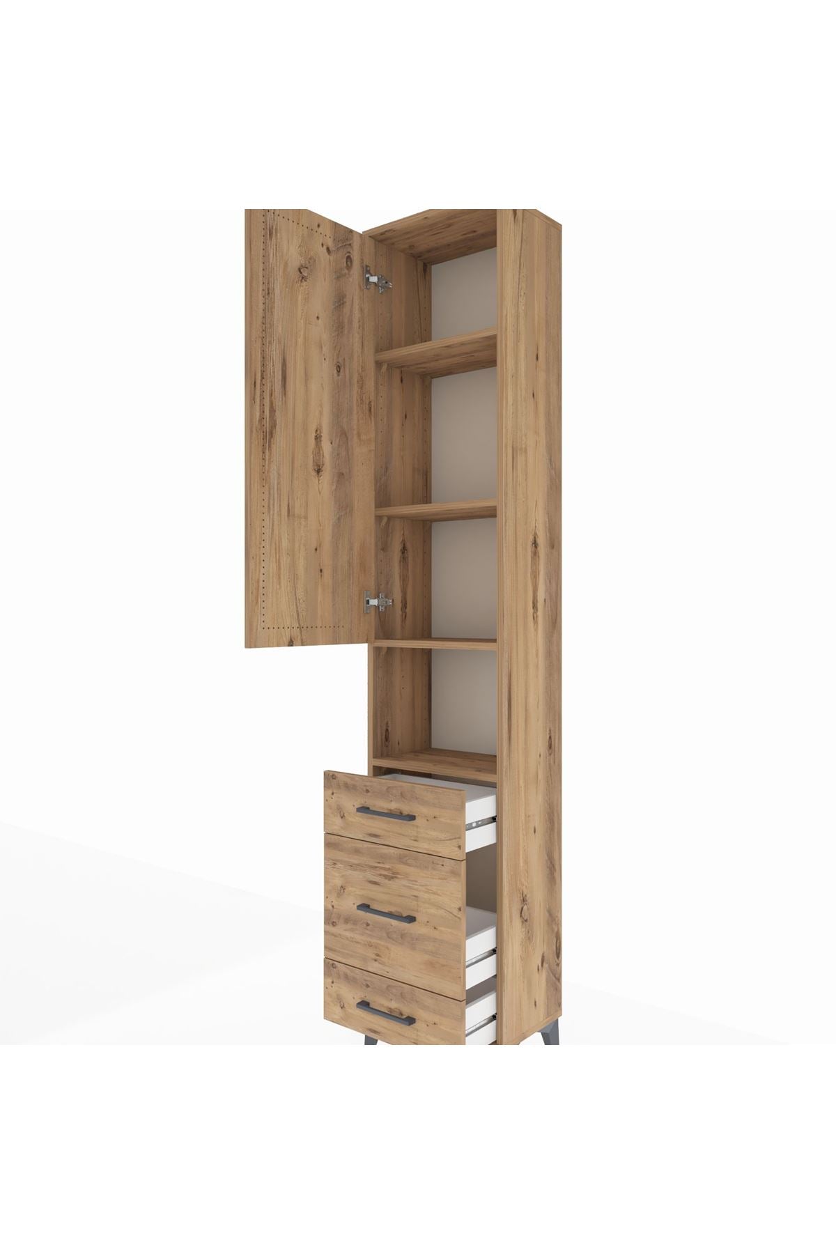 Arges Dolap 4 Raflı 3 Çekmeceli Tek Kapaklı 44x30x221 Çam-Çam