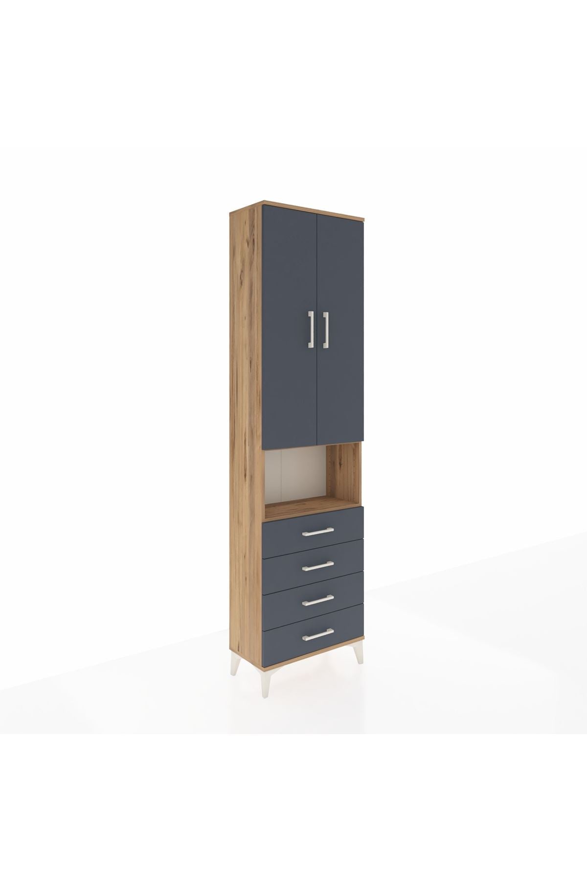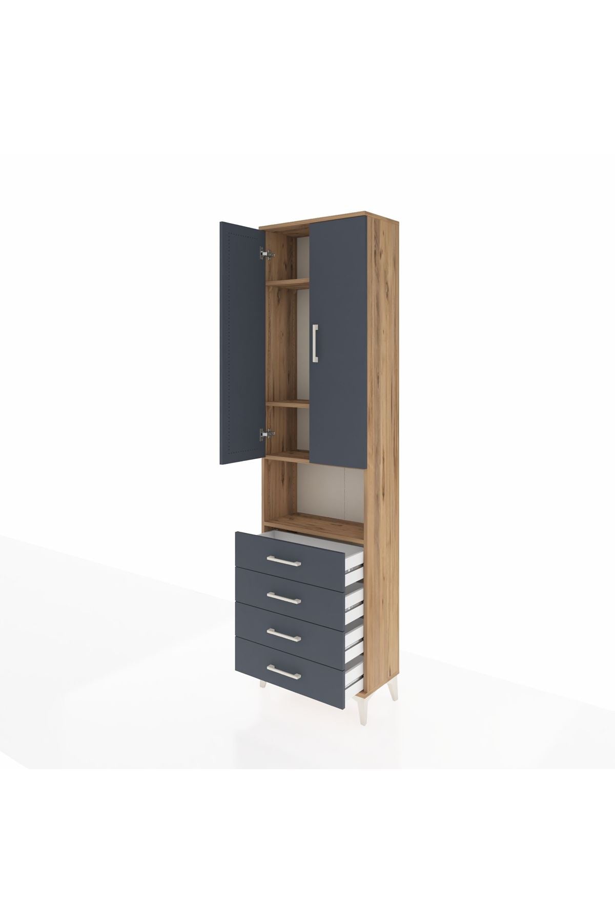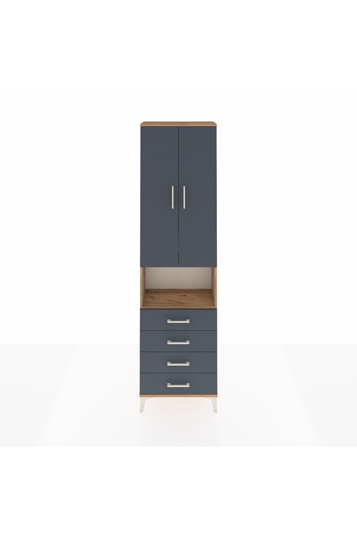Arges Dolap 4 Raflı 4 Çekmeceli 2 Kapaklı 60x30x221 Çam-Antrasit