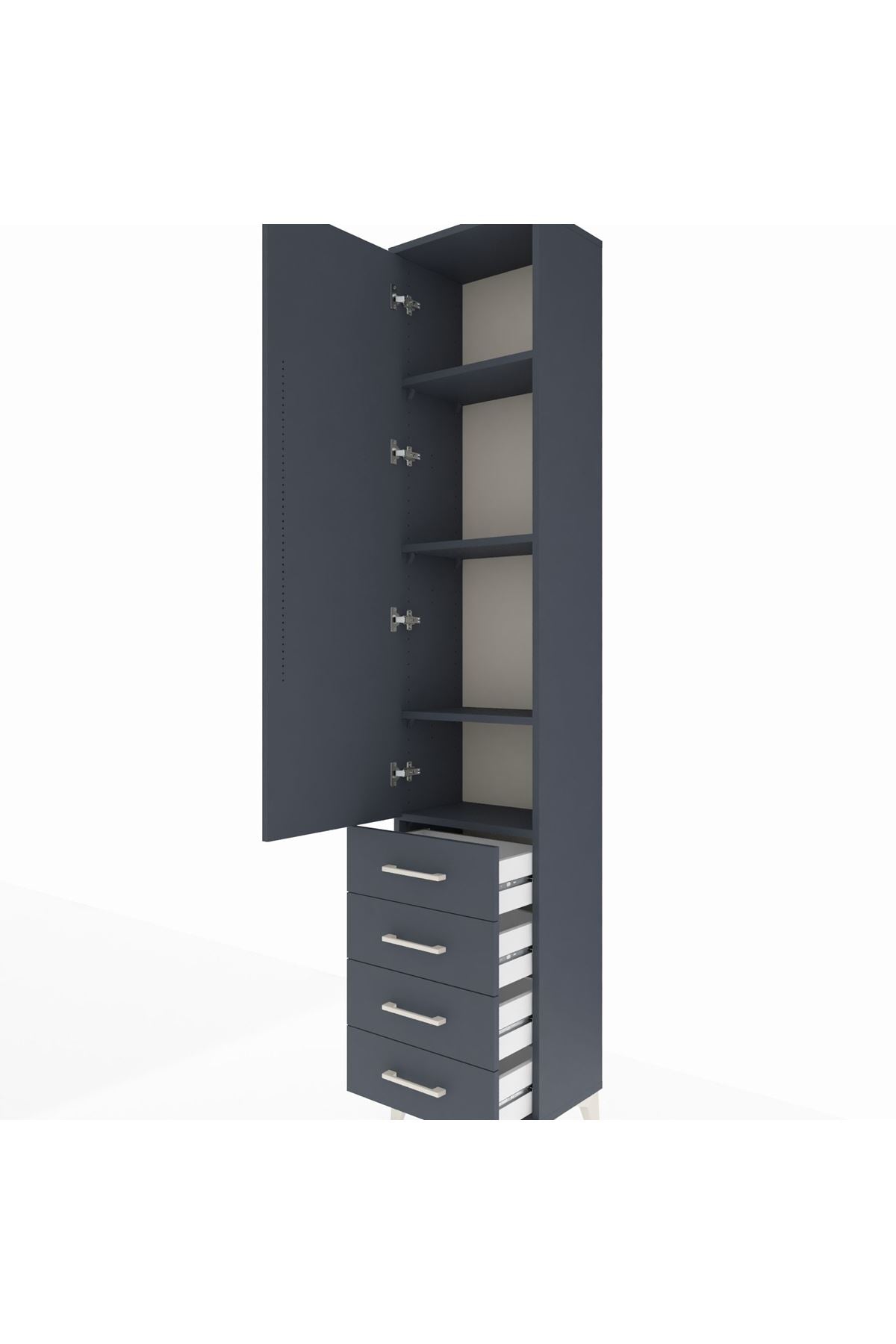 Arges Dolap 4 Raflı 4 Çekmeceli Tek Kapaklı 44x30x221 Antrasit-Antrasit