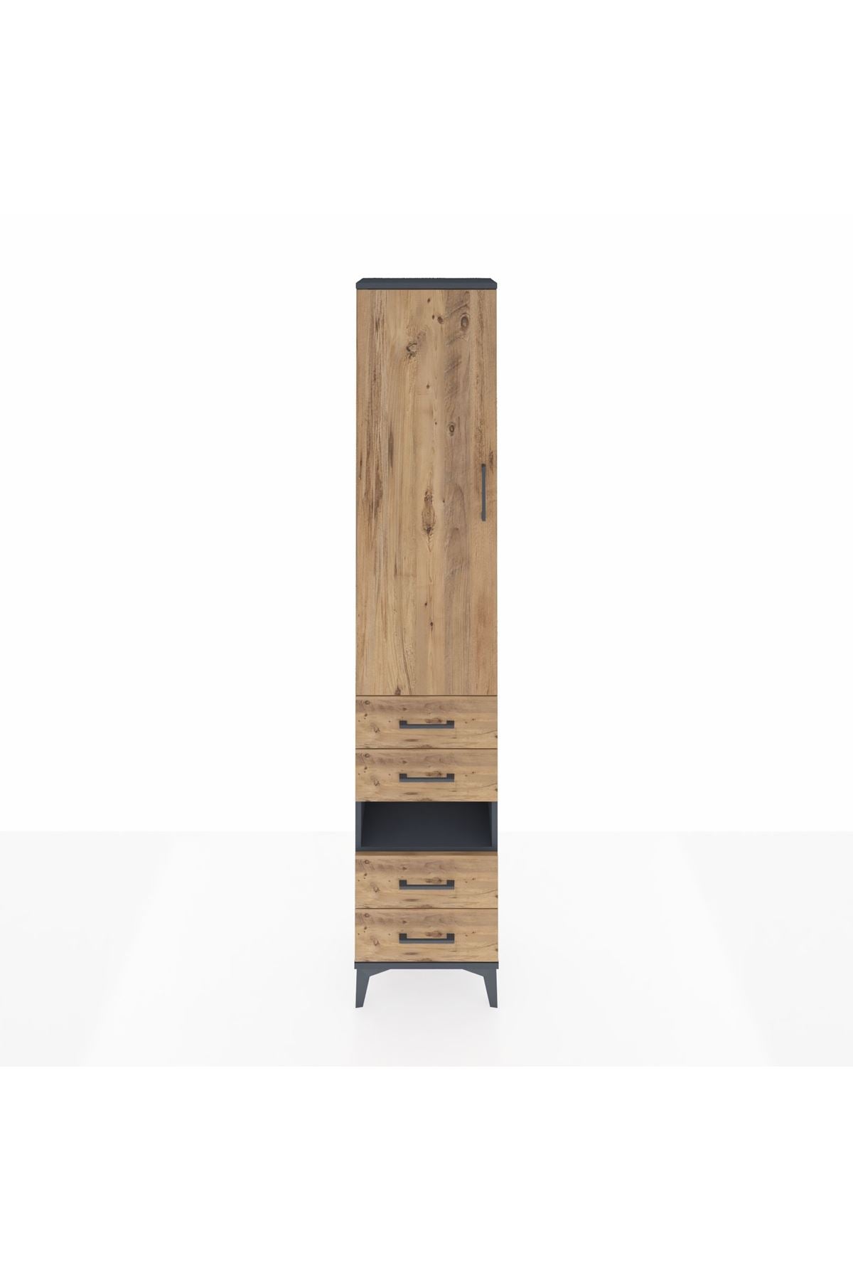 Arges Dolap 4 Raflı 4 Çekmeceli Tek Kapaklı 44x30x221 Antrasit-Çam