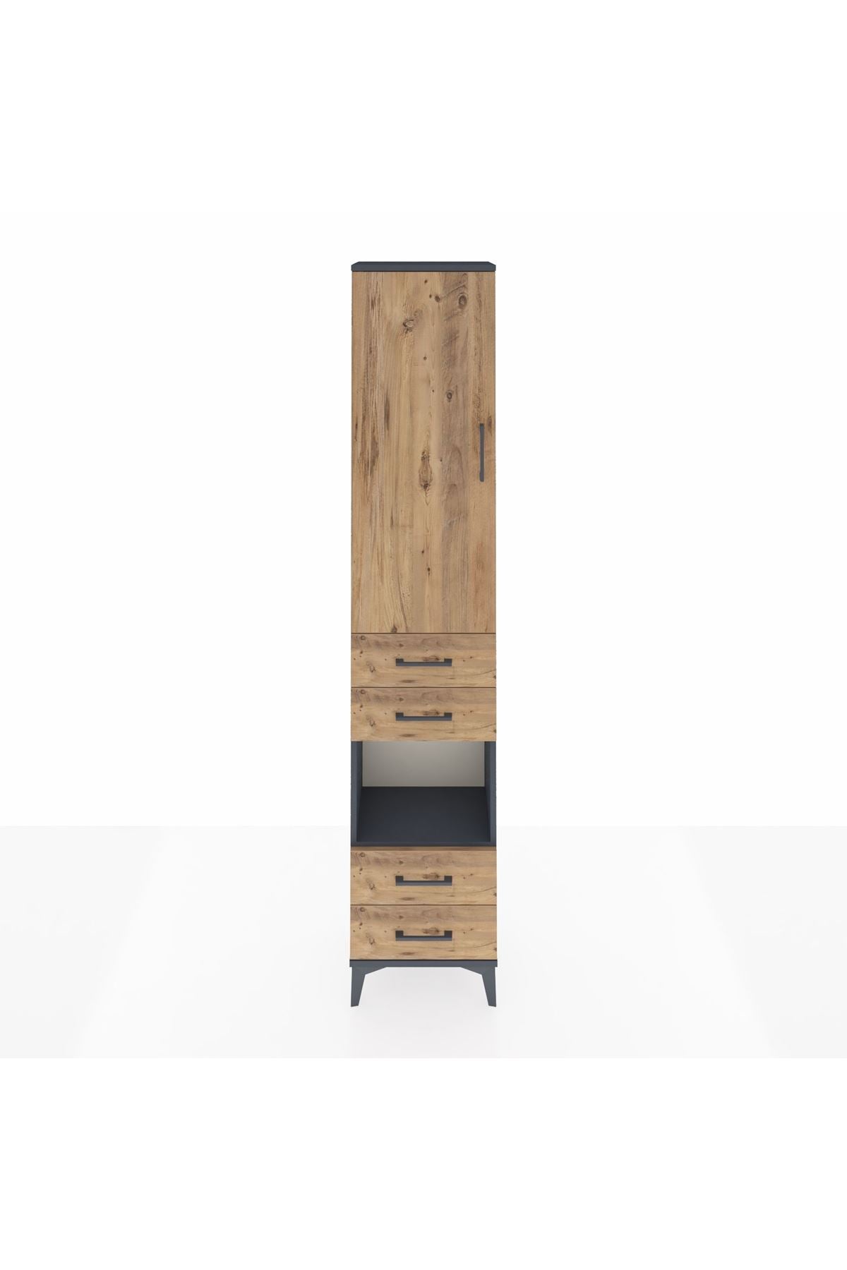Arges Dolap 4 Raflı 4 Çekmeceli Tek Kapaklı 44x30x221 Antrasit-Çam
