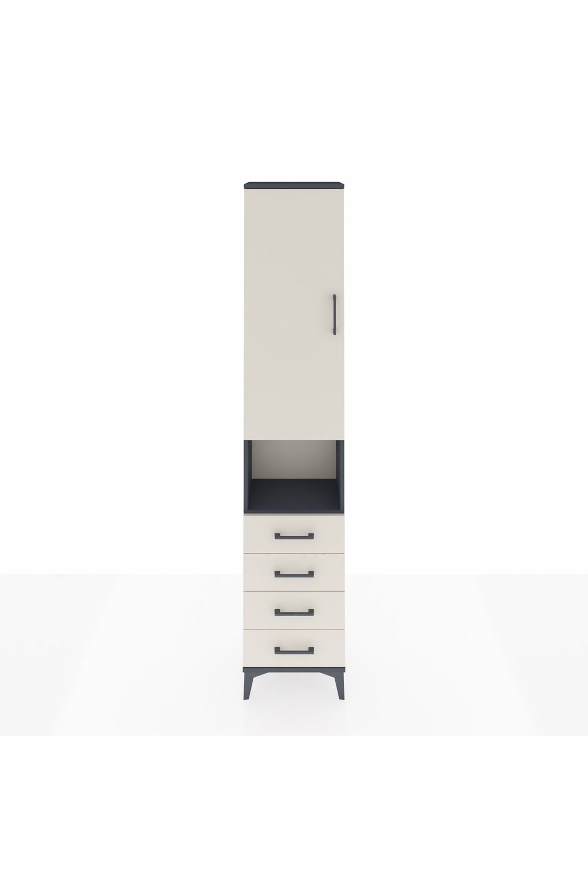 Arges Dolap 4 Raflı 4 Çekmeceli Tek Kapaklı 44x30x221 Antrasit-Aytaşı