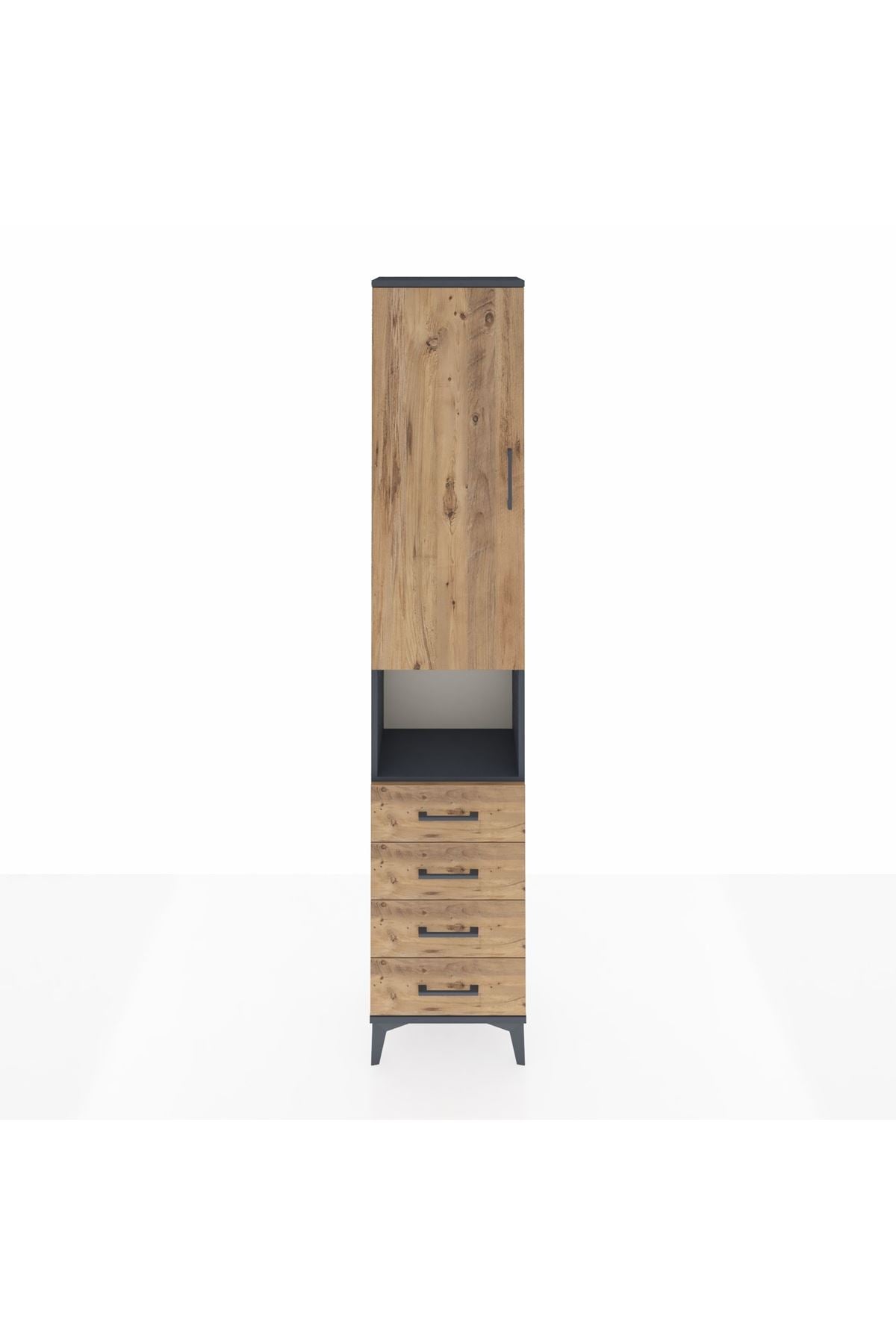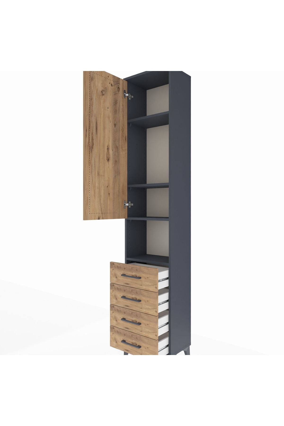 Arges Dolap 4 Raflı 4 Çekmeceli Tek Kapaklı 44x30x221 Antrasit-Çam