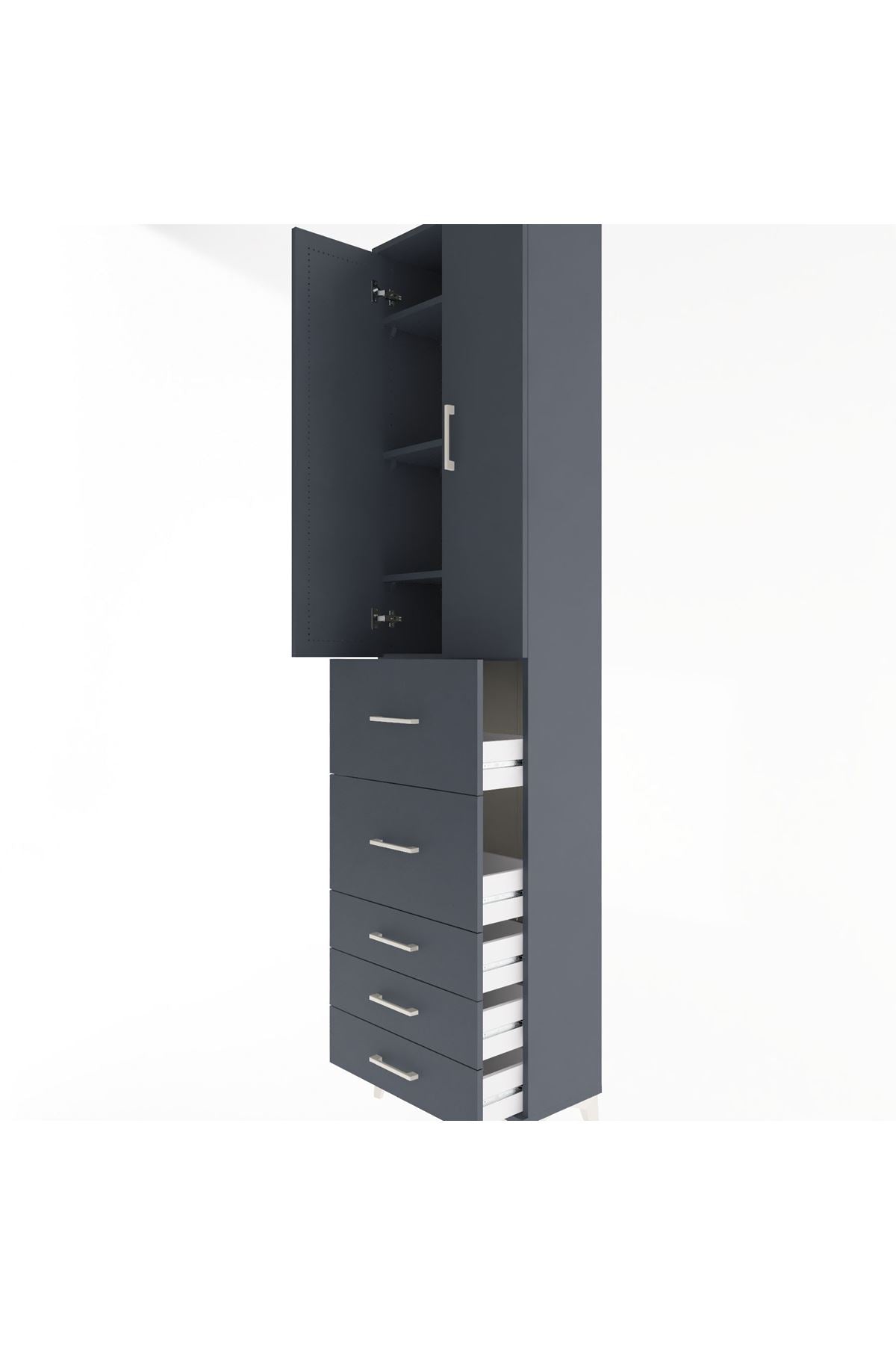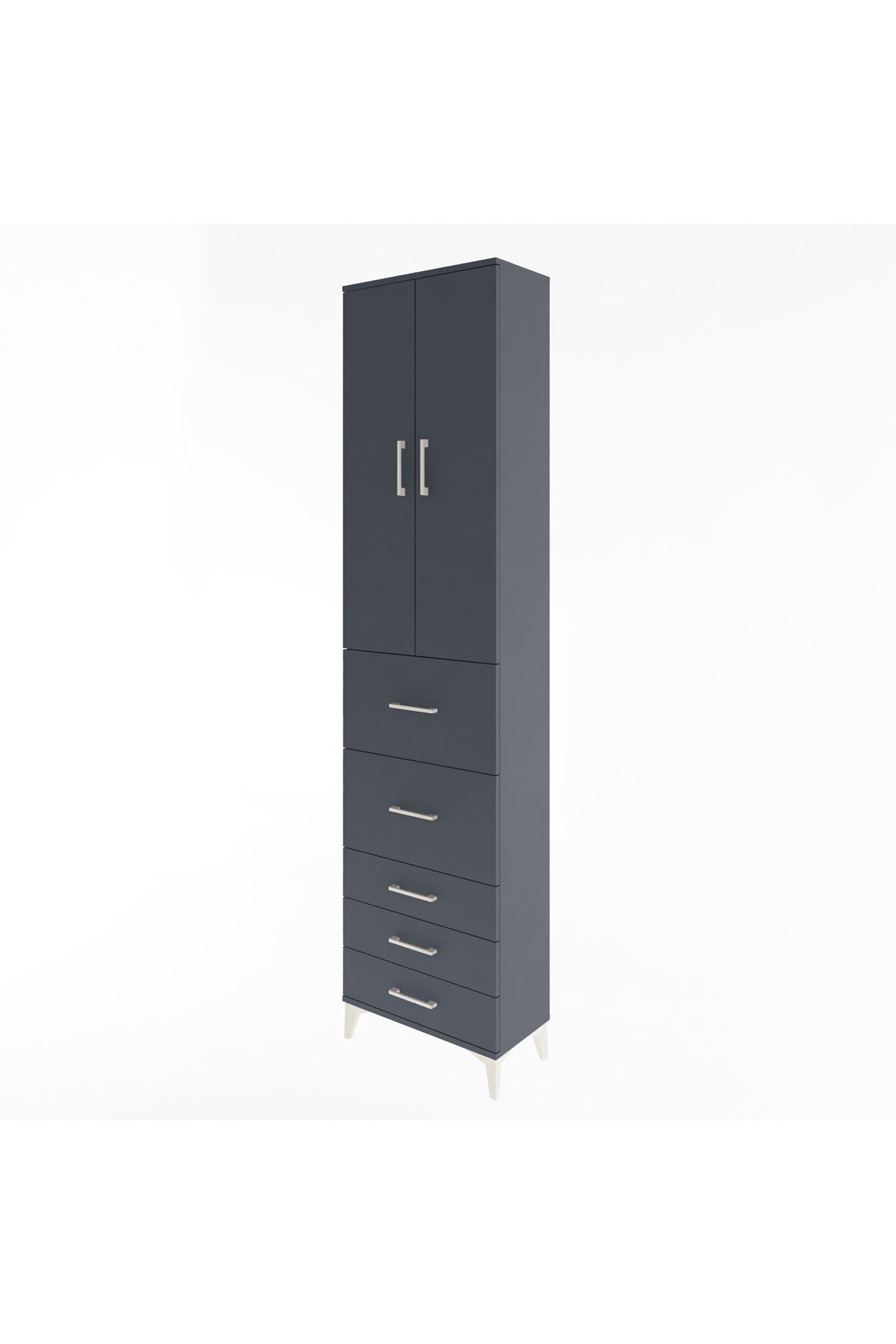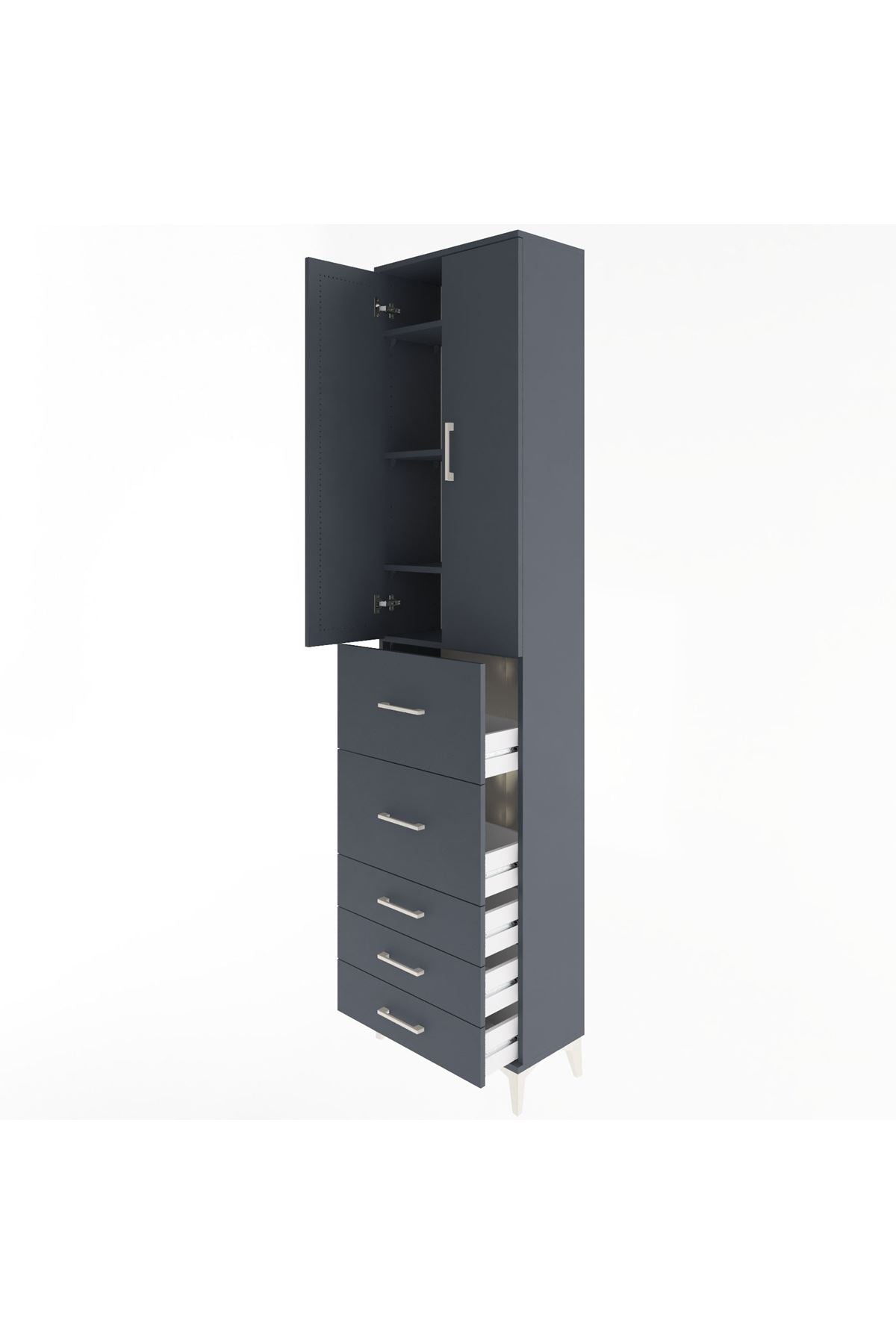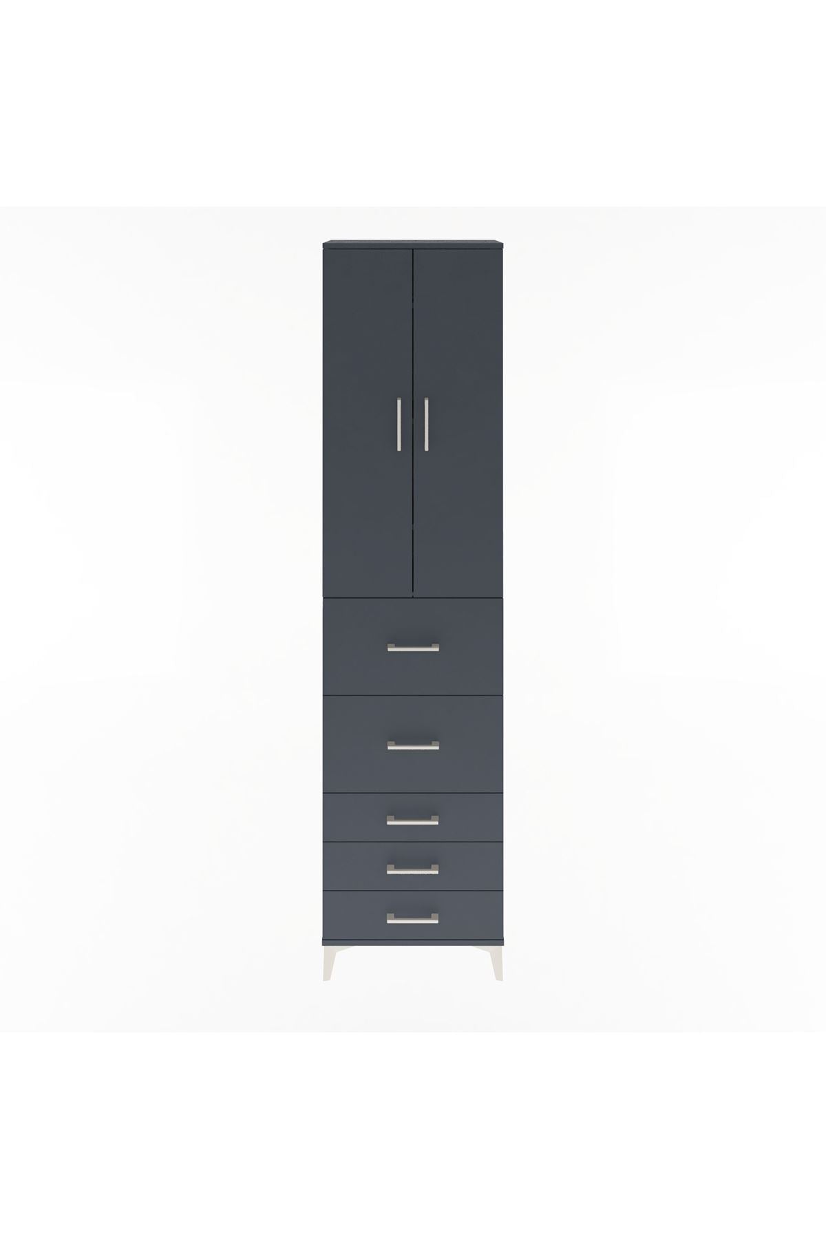 Arges Dolap 4 Raflı 5 Çekmeceli 2 Kapaklı 60x30x243 Antrasit-Antrasit