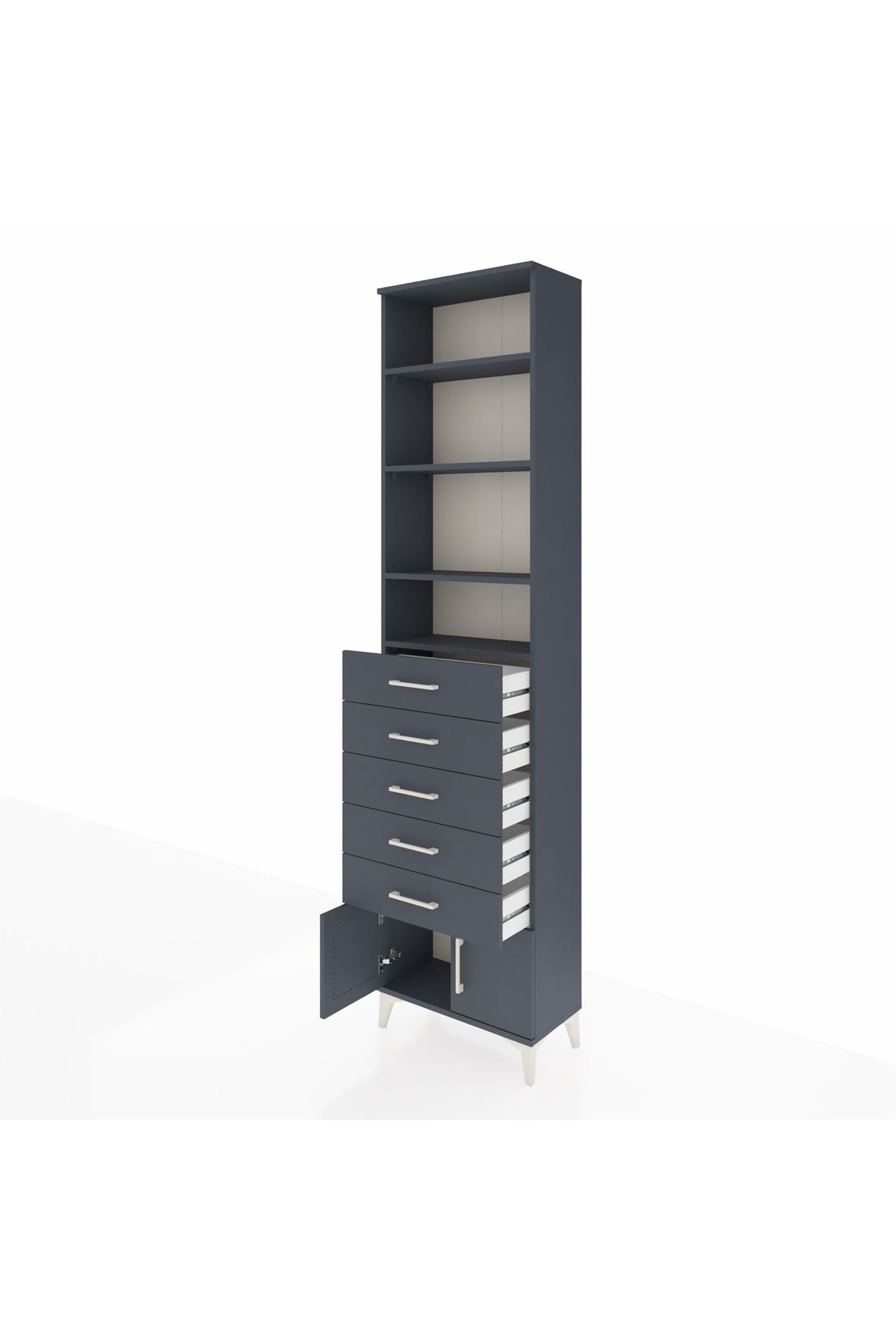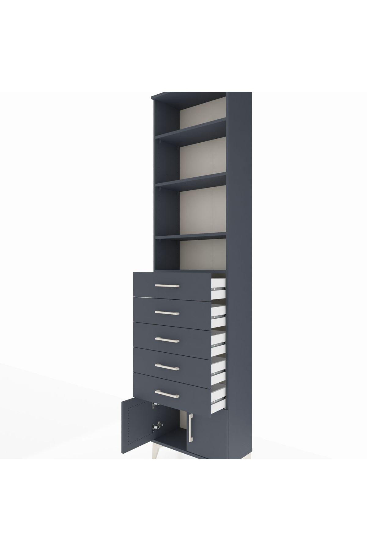 Arges Dolap 4 Raflı 5 Çekmeceli 2 Kapaklı 60x30x243 Antrasit-Antrasit