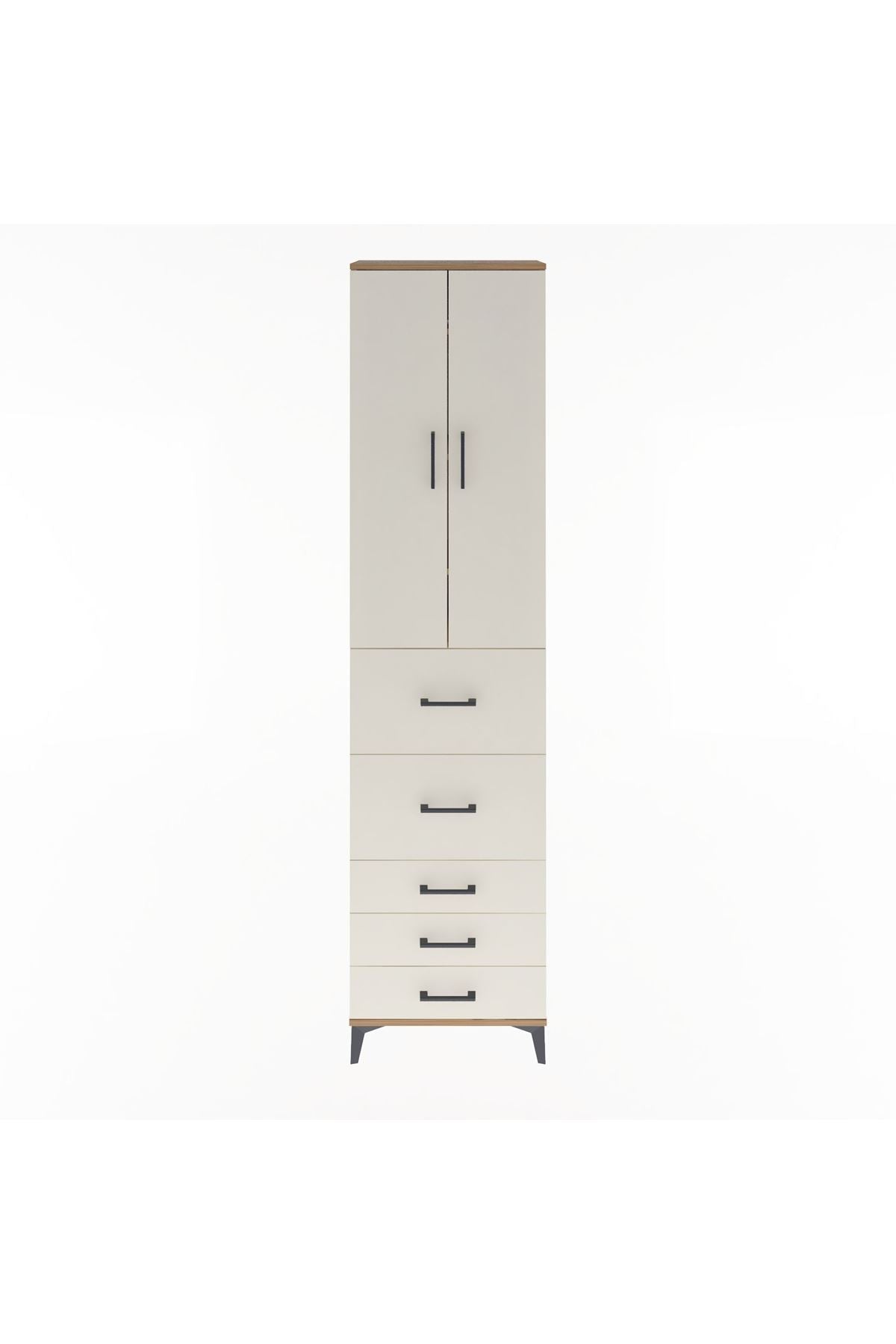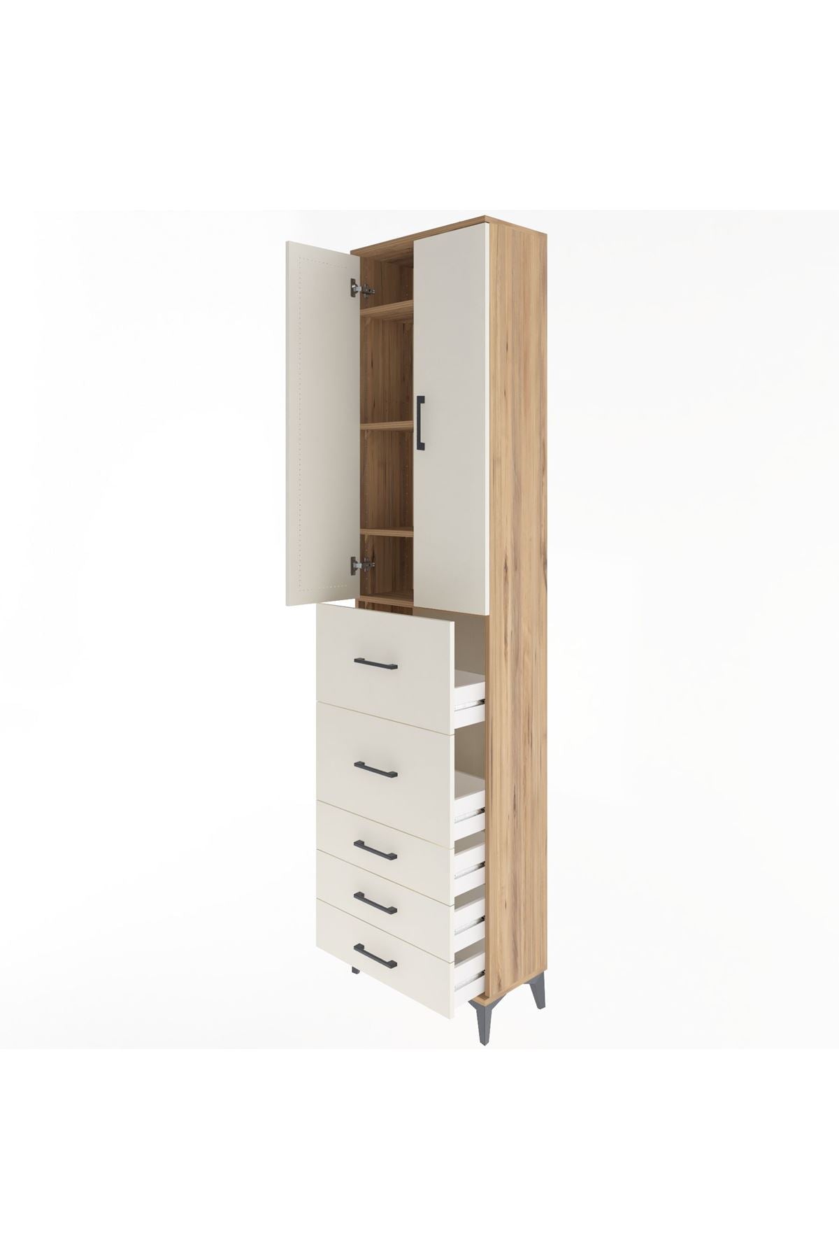 Arges Dolap 4 Raflı 5 Çekmeceli 2 Kapaklı 60x30x243 Çam-Aytaşı