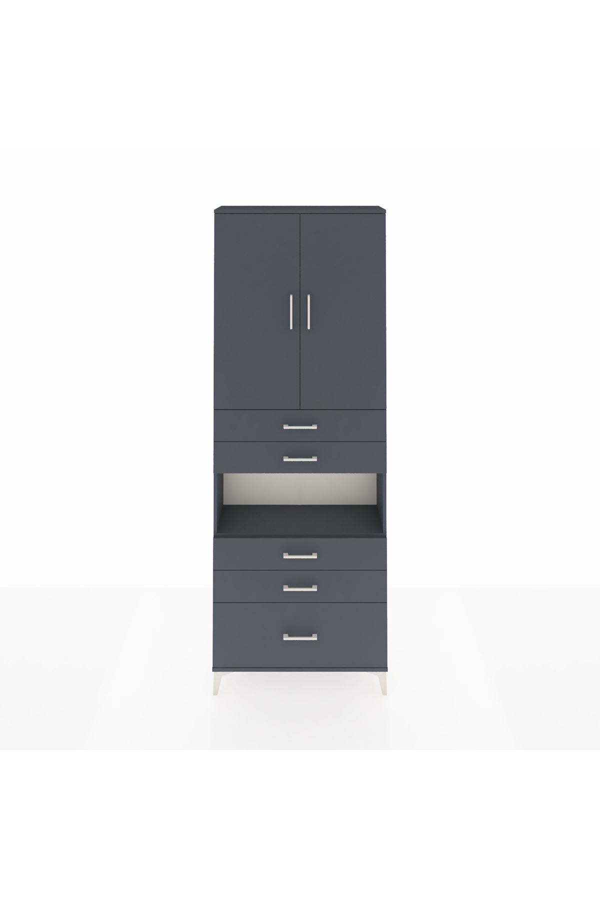 Arges Dolap 4 Raflı 5 Çekmeceli 2 Kapaklı 88x30x243 Antrasit-Antrasit