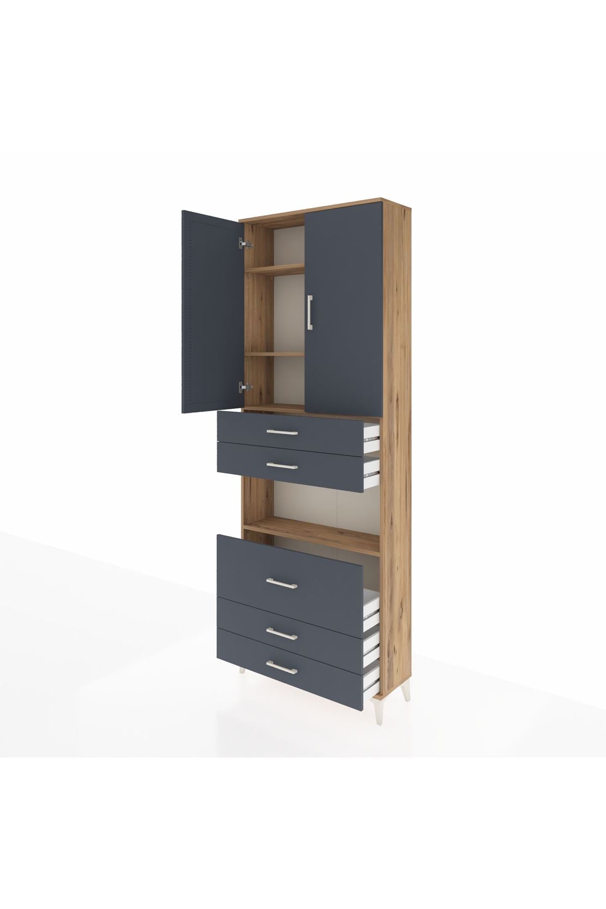 Arges Dolap 4 Raflı 5 Çekmeceli 2 Kapaklı 88x30x243 Çam-Antrasit