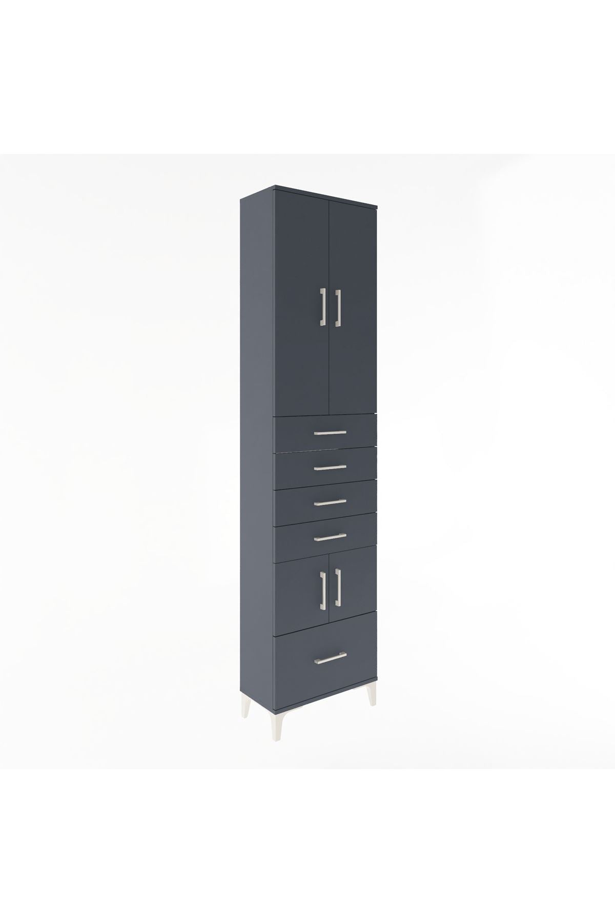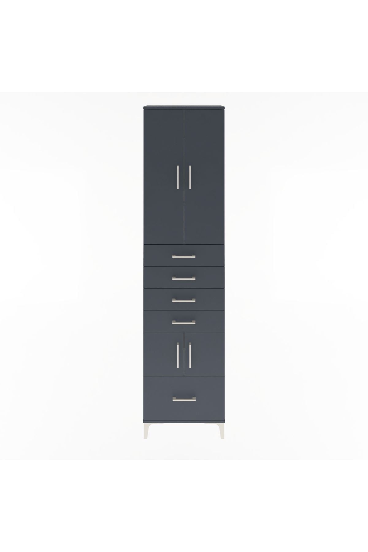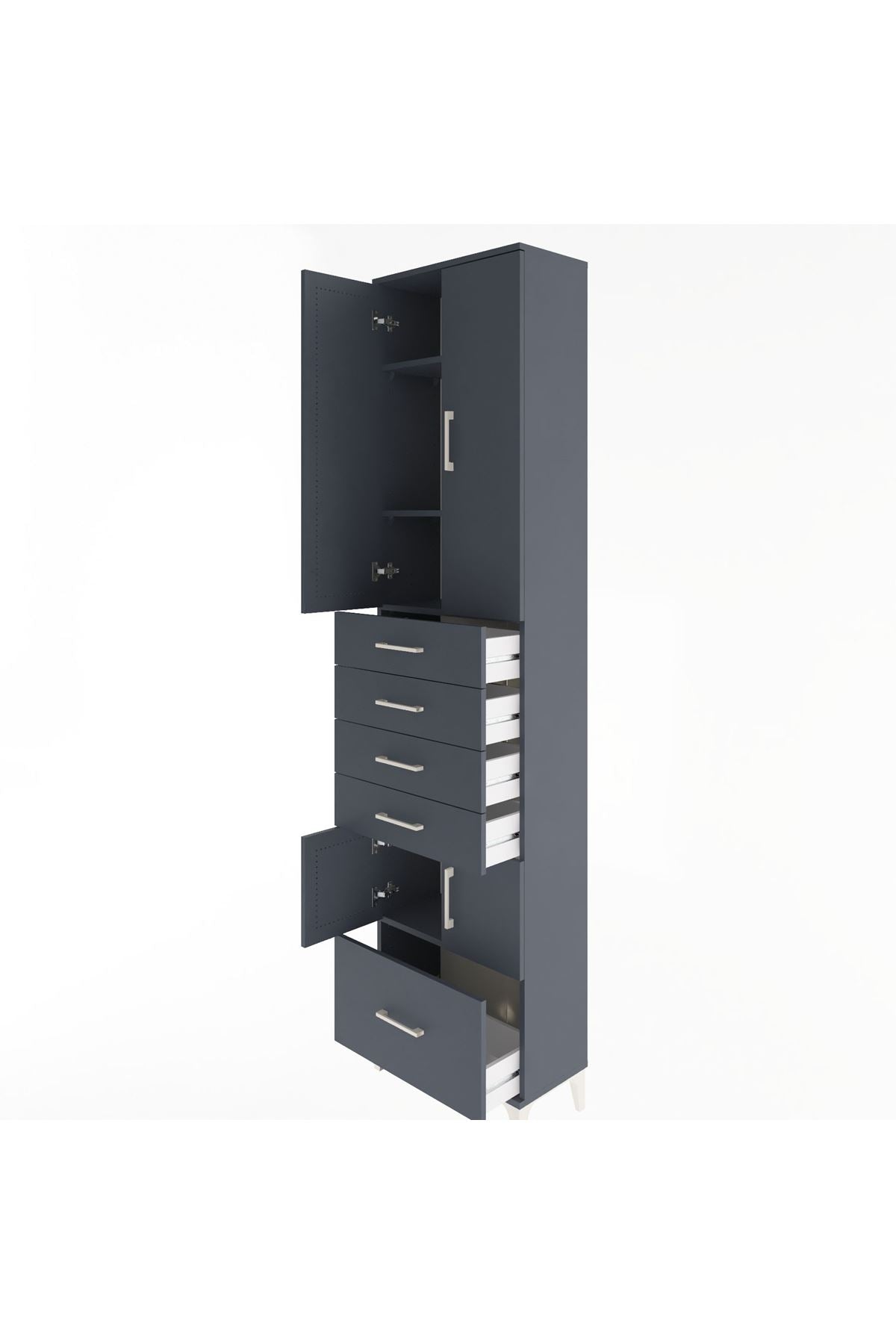Arges Dolap 4 Raflı 5 Çekmeceli 4 Kapaklı 60x30x243 Antrasit-Antrasit