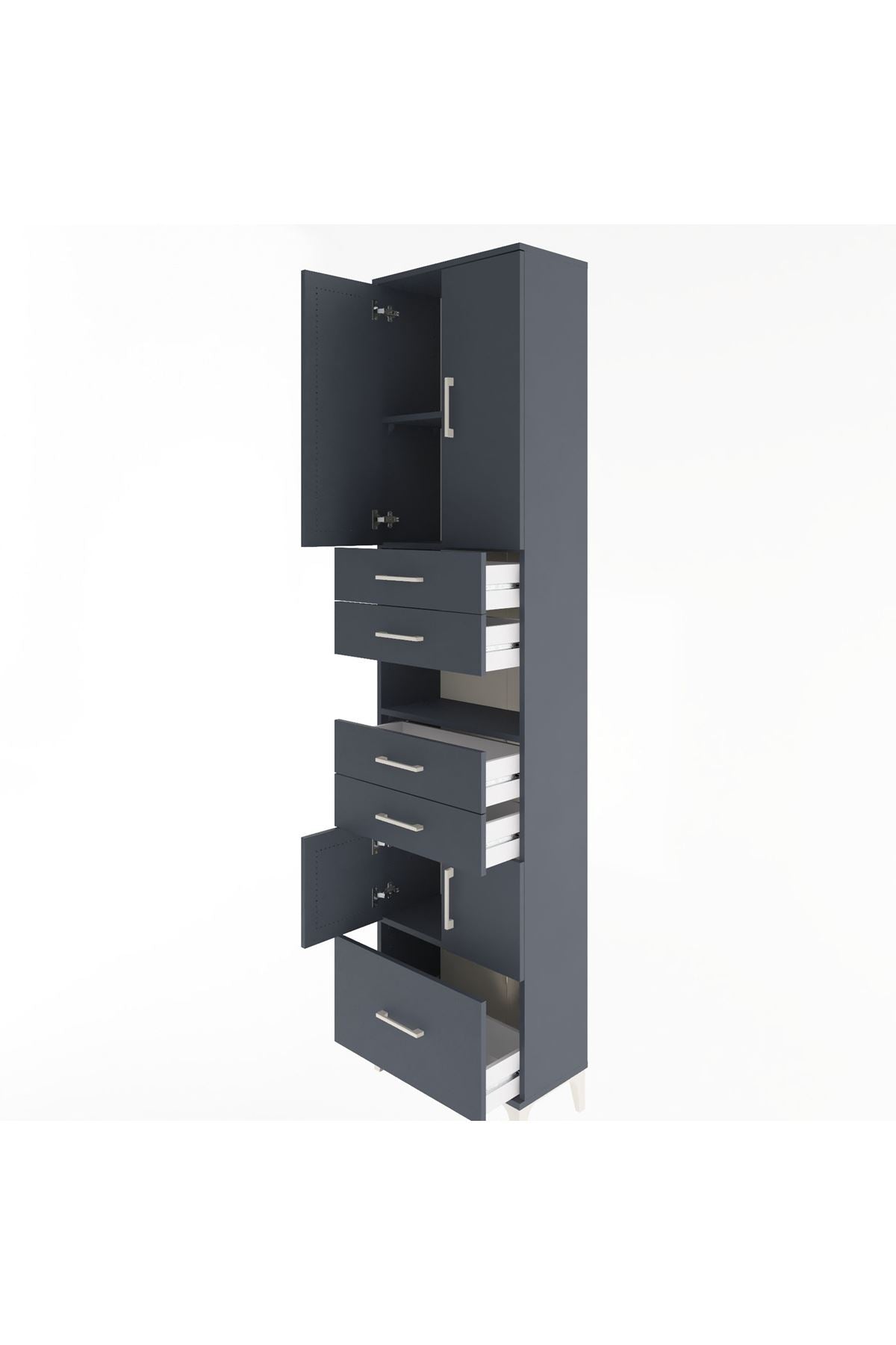 Arges Dolap 4 Raflı 5 Çekmeceli 4 Kapaklı 60x30x243 Antrasit-Antrasit