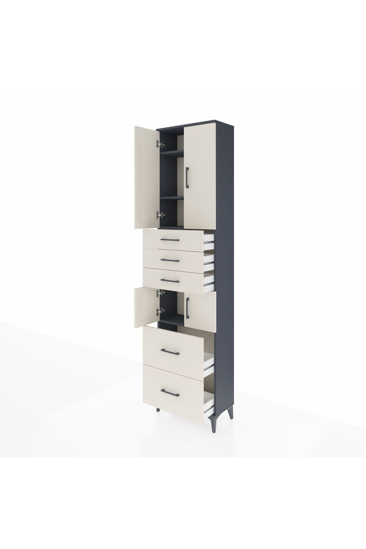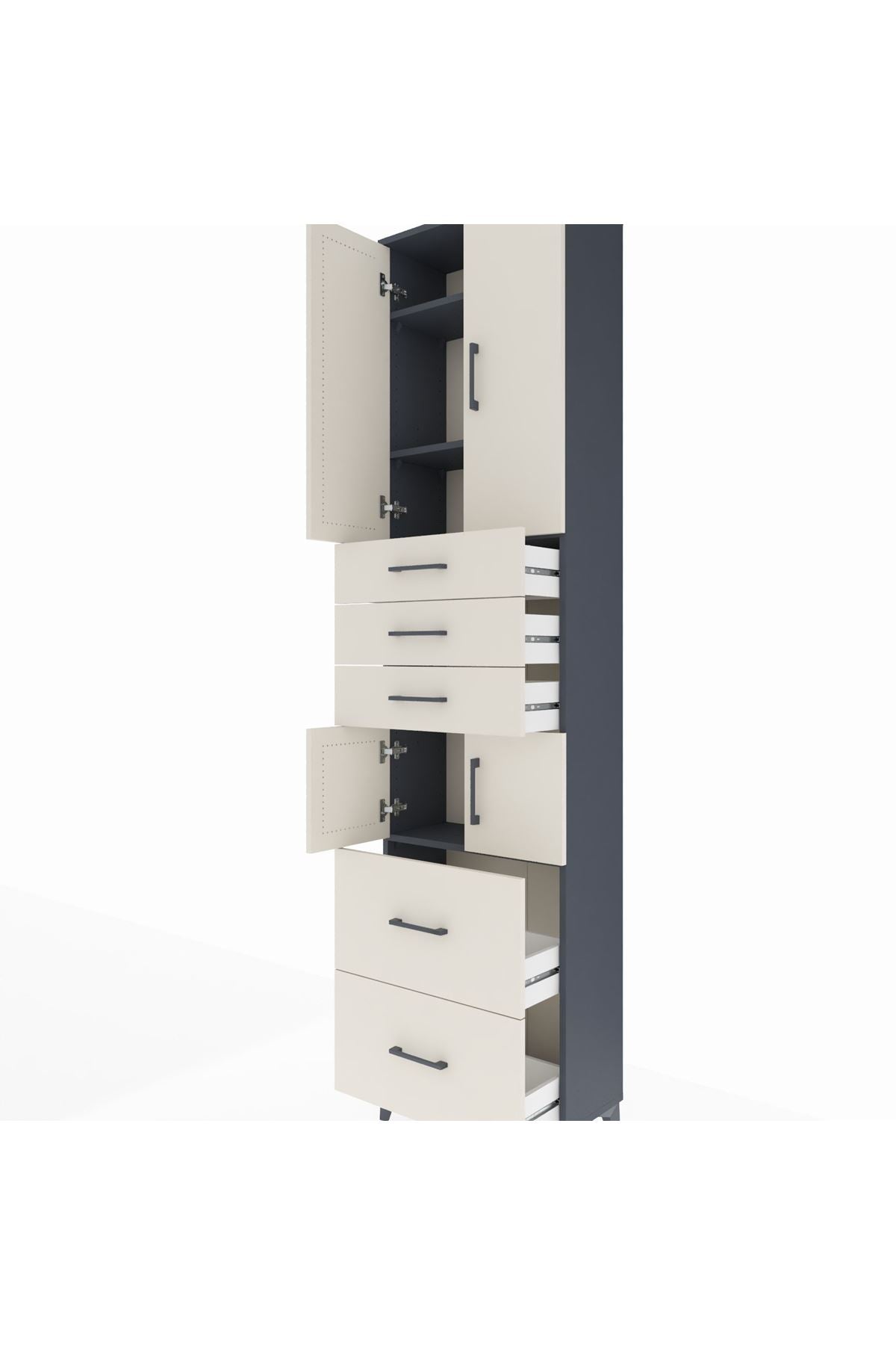 Arges Dolap 4 Raflı 5 Çekmeceli 4 Kapaklı 60x30x243 Antrasit-Aytaşı