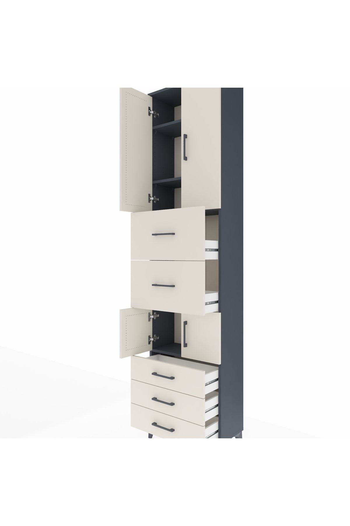 Arges Dolap 4 Raflı 5 Çekmeceli 4 Kapaklı 60x30x243 Antrasit-Aytaşı