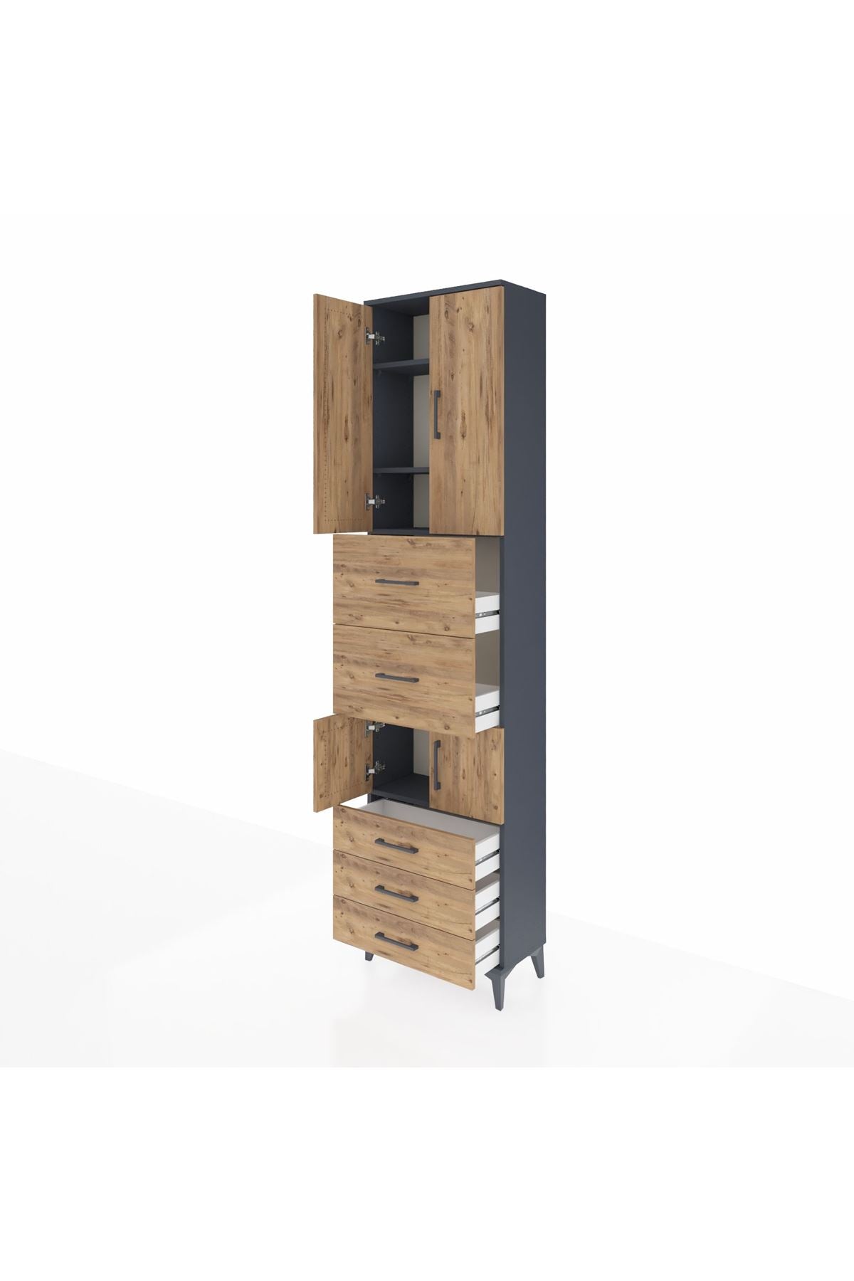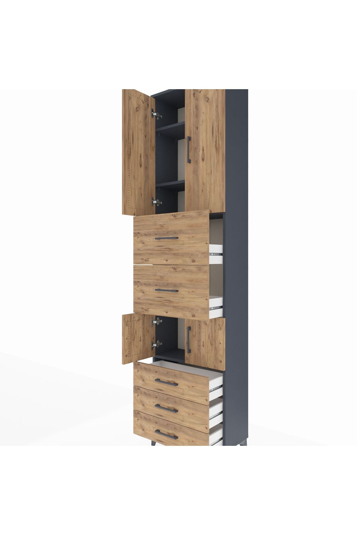 Arges Dolap 4 Raflı 5 Çekmeceli 4 Kapaklı 60x30x243 Antrasit-Çam