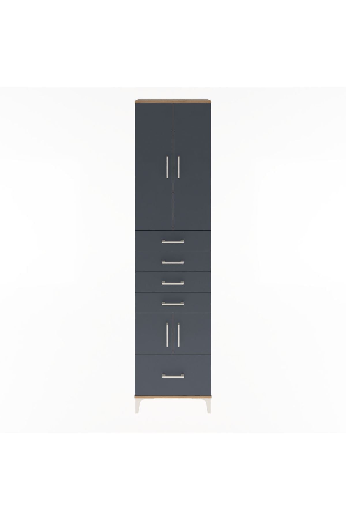 Arges Dolap 4 Raflı 5 Çekmeceli 4 Kapaklı 60x30x243 Çam-Antrasit