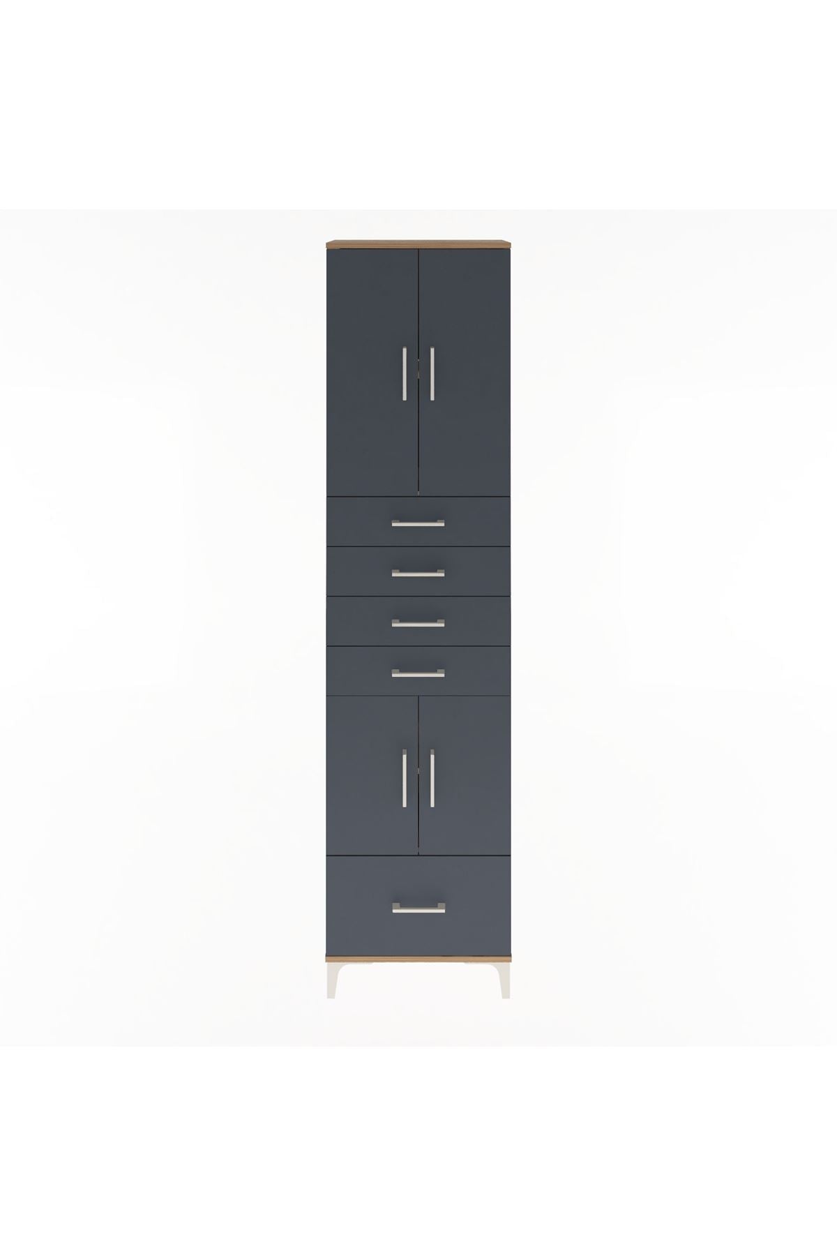 Arges Dolap 4 Raflı 5 Çekmeceli 4 Kapaklı 60x30x243 Çam-Antrasit