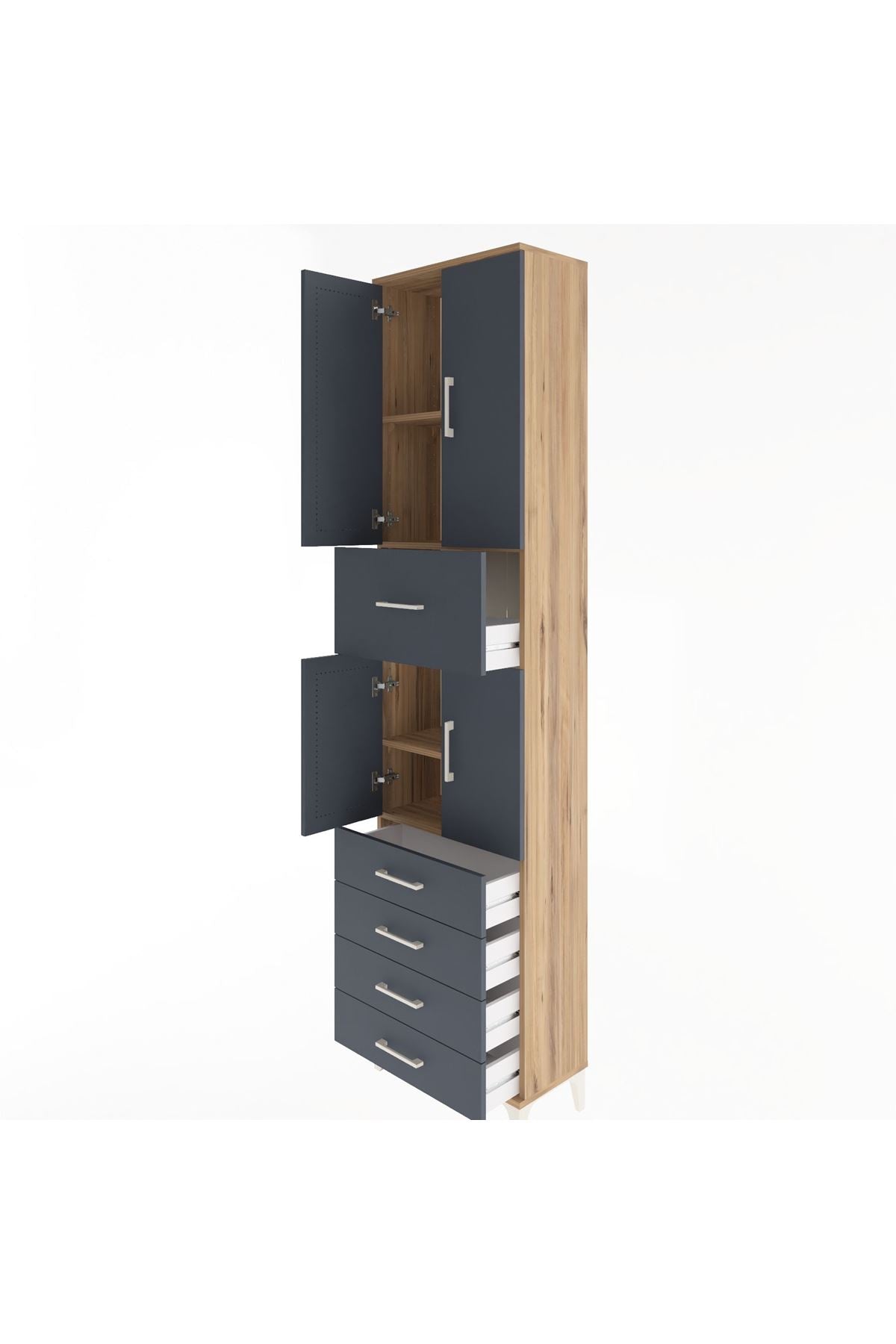 Arges Dolap 4 Raflı 5 Çekmeceli 4 Kapaklı 60x30x243 Çam-Antrasit