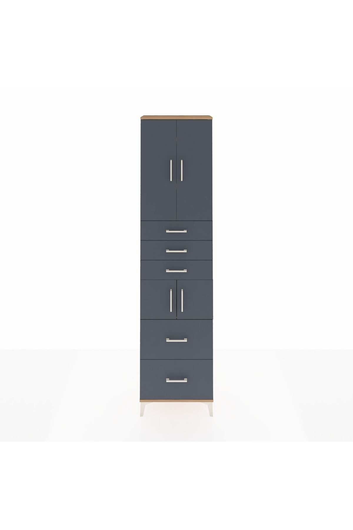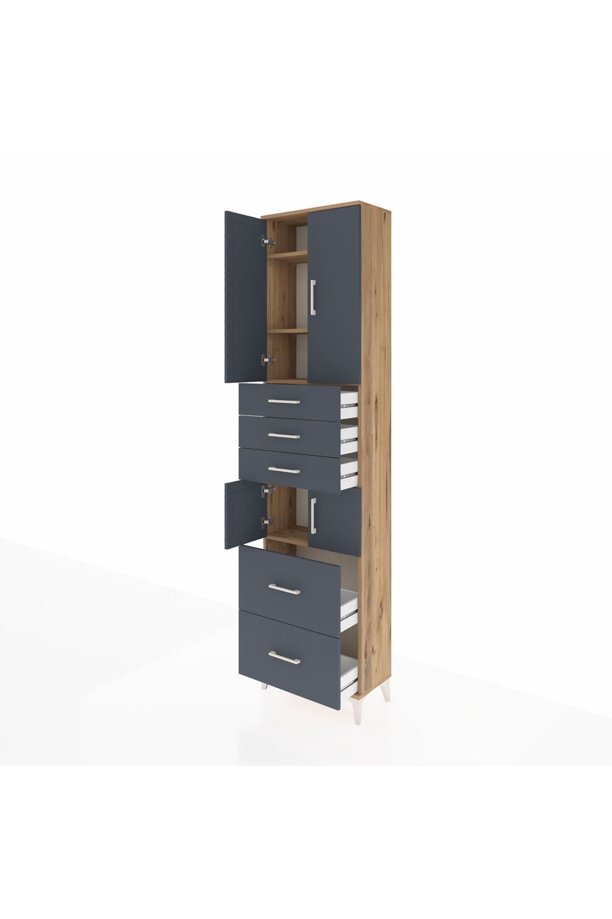 Arges Dolap 4 Raflı 5 Çekmeceli 4 Kapaklı 60x30x243 Çam-Antrasit