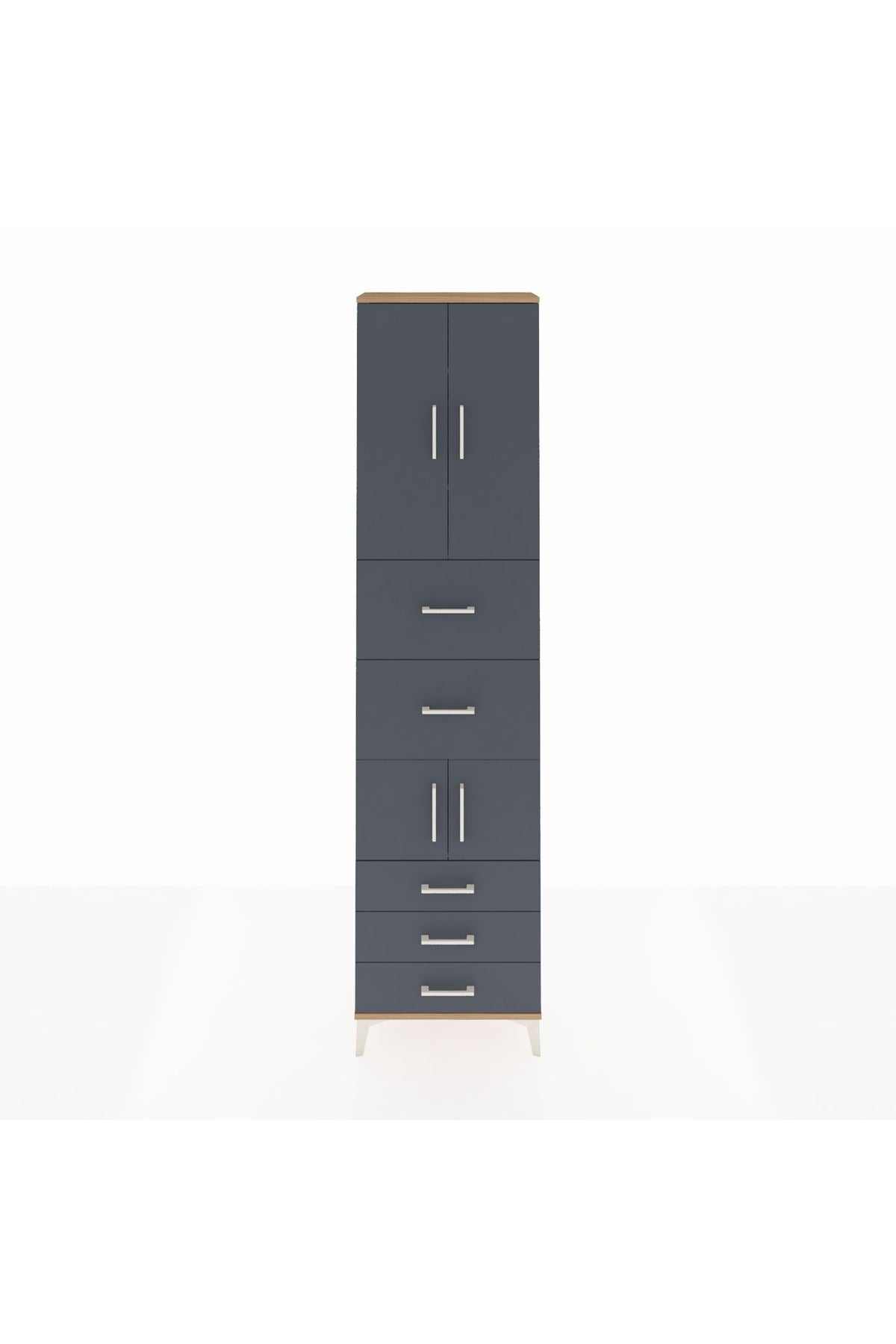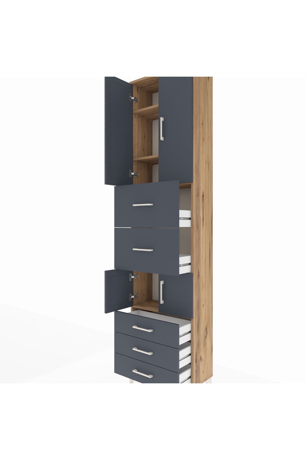 Arges Dolap 4 Raflı 5 Çekmeceli 4 Kapaklı 60x30x243 Çam-Antrasit