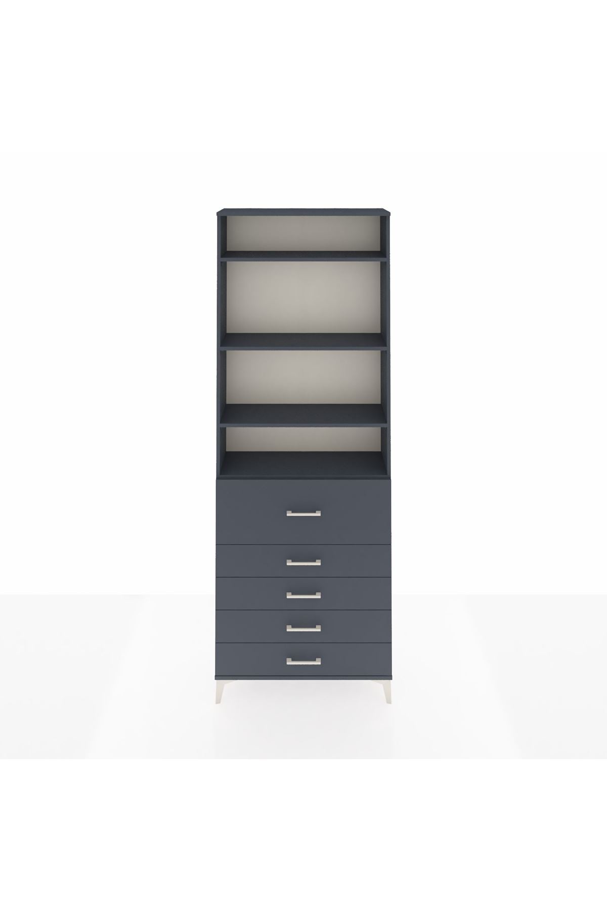 Arges Dolap 4 Raflı 5 Çekmeceli 88x30x243 Antrasit-Antrasit