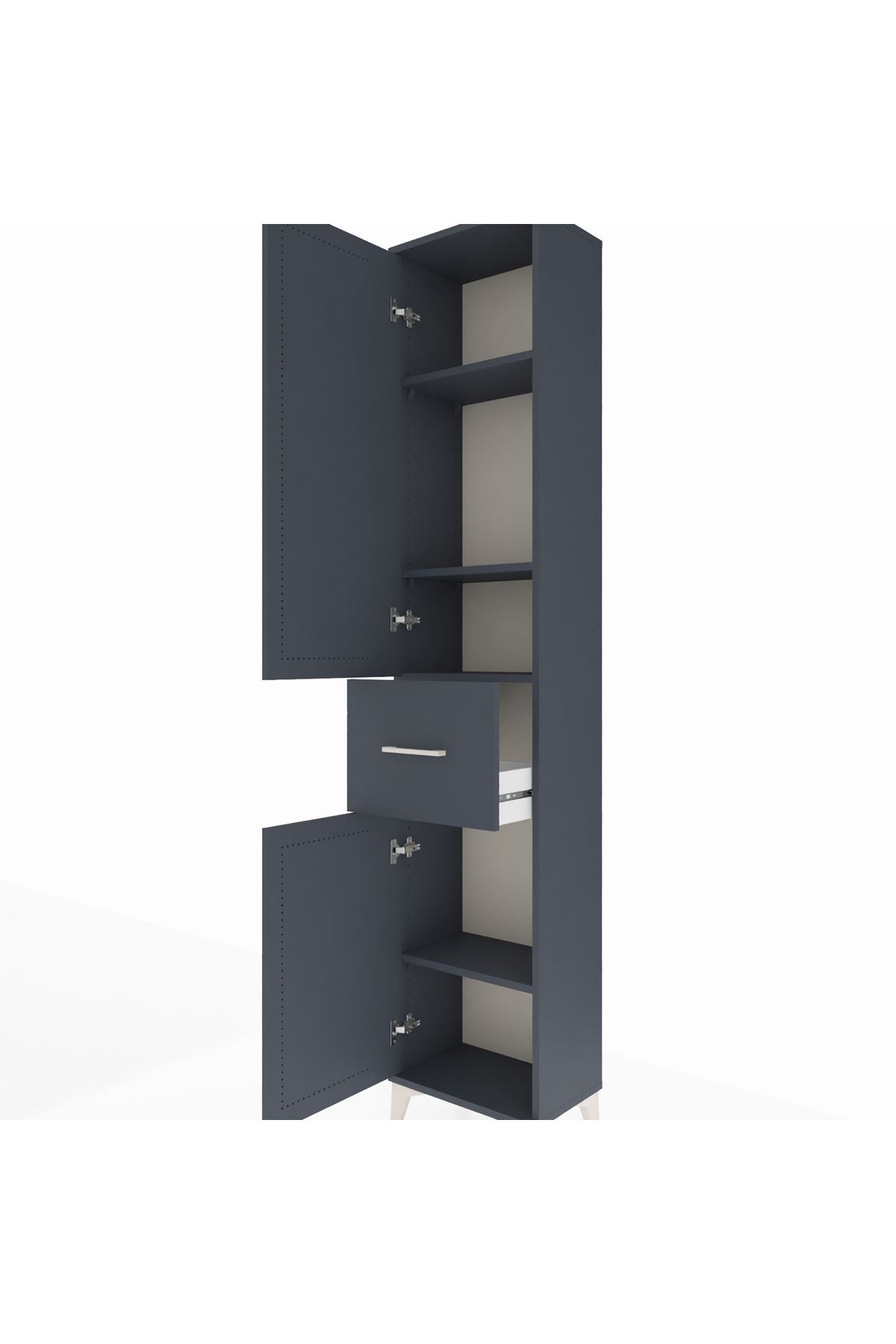 Arges Dolap 4 Raflı Tek Çekmeceli 2 Kapaklı 44x30x221 Antrasit-Antrasit