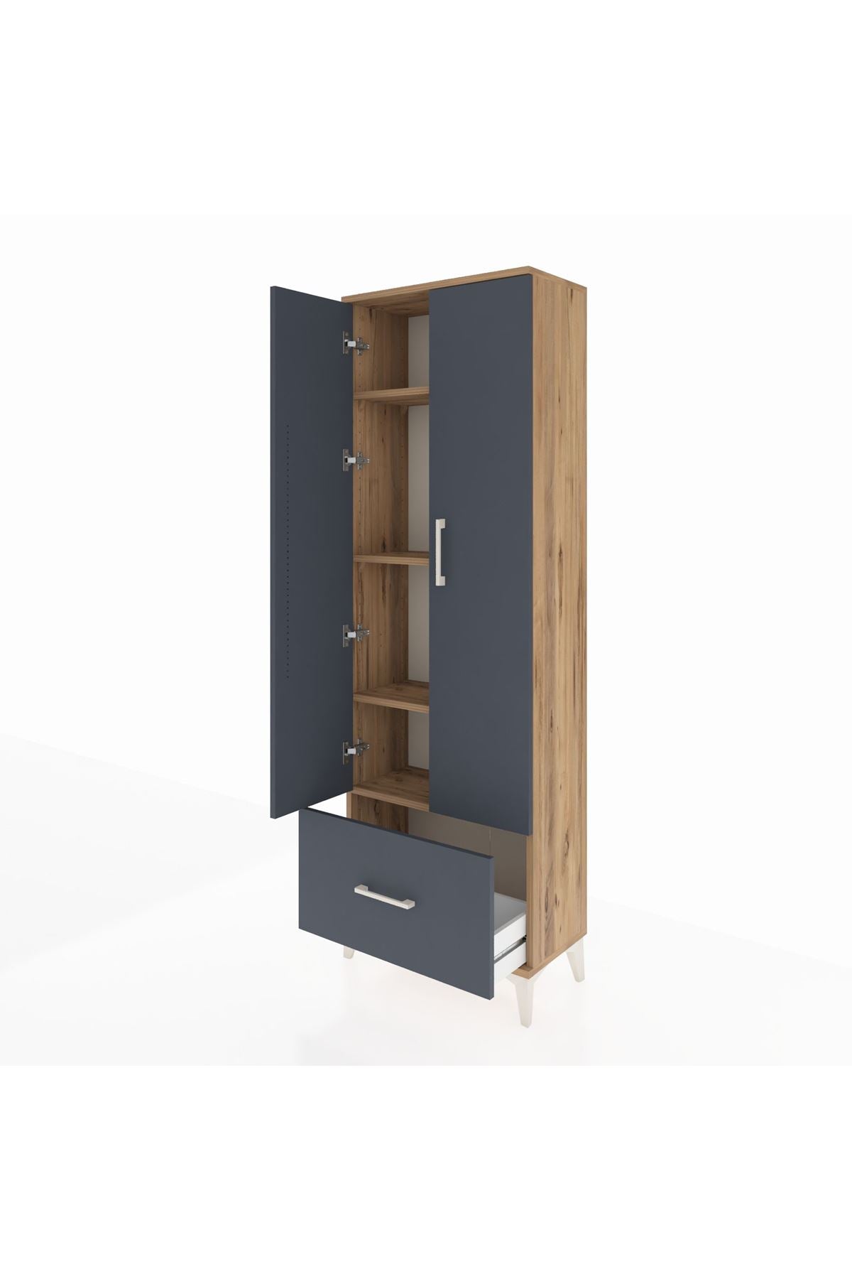 Arges Dolap 4 Raflı Tek Çekmeceli 2 Kapaklı 60x30x182 Çam-Antrasit