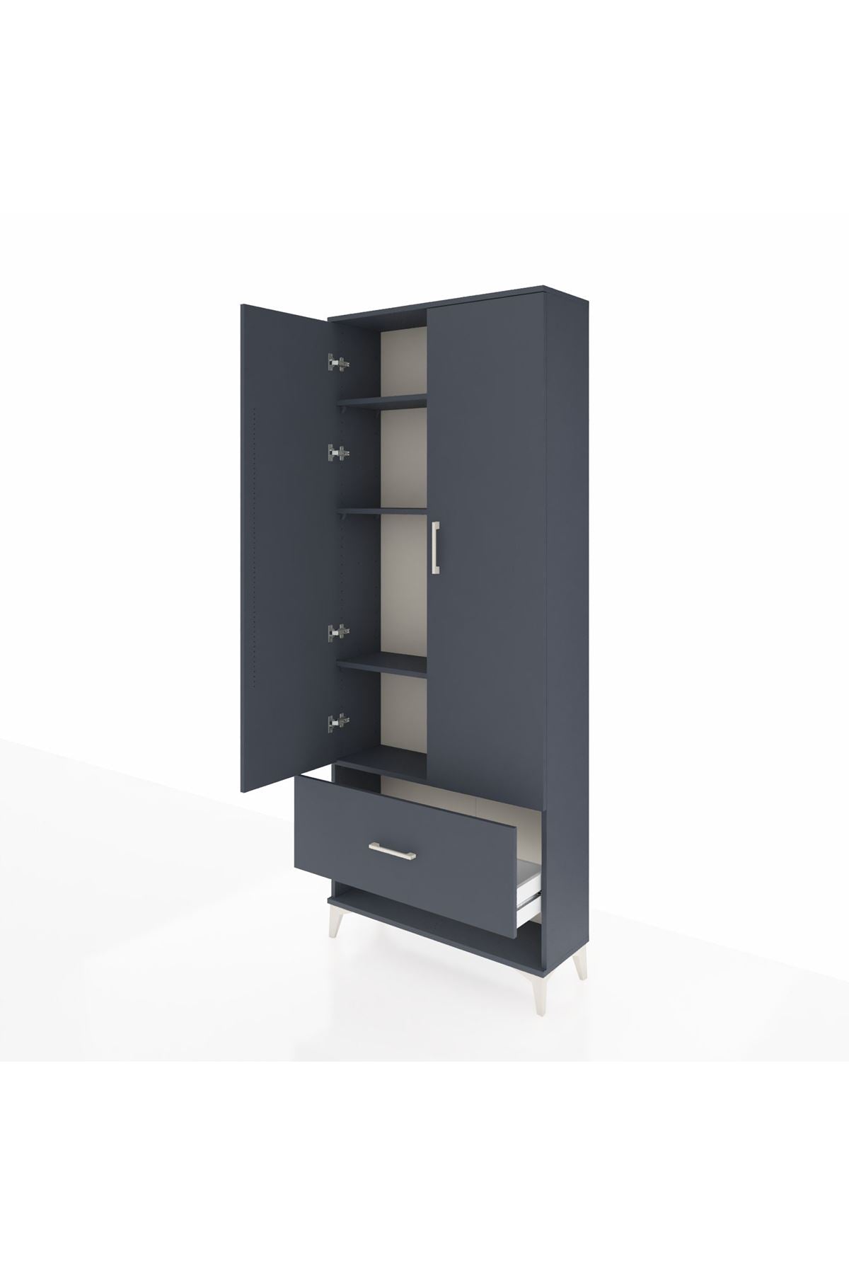 Arges Dolap 4 Raflı Tek Çekmeceli 2 Kapaklı 88x30x221 Antrasit-Antrasit