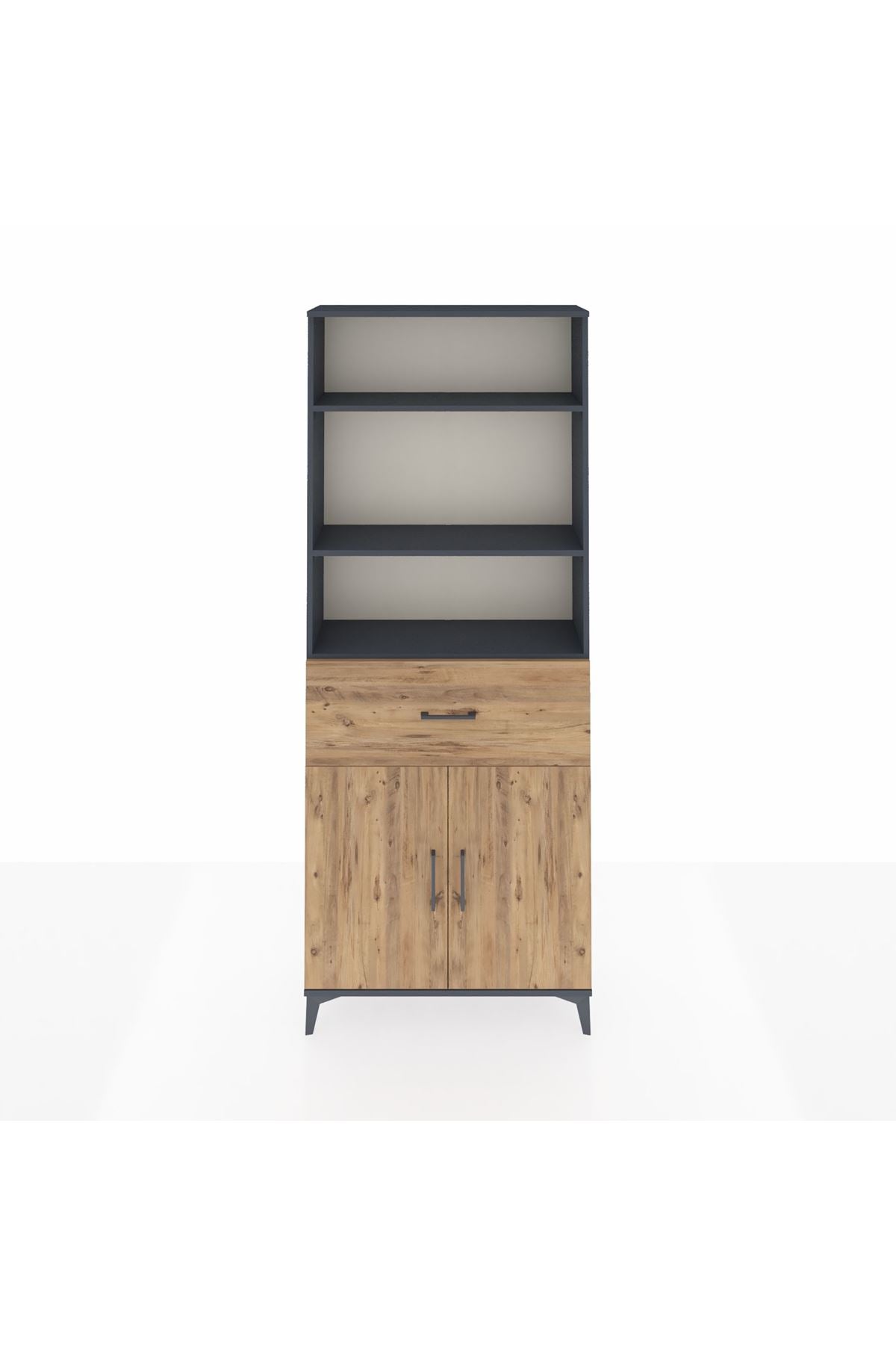 Arges Dolap 4 Raflı Tek Çekmeceli 2 Kapaklı 88x30x221 Antrasit-Çam