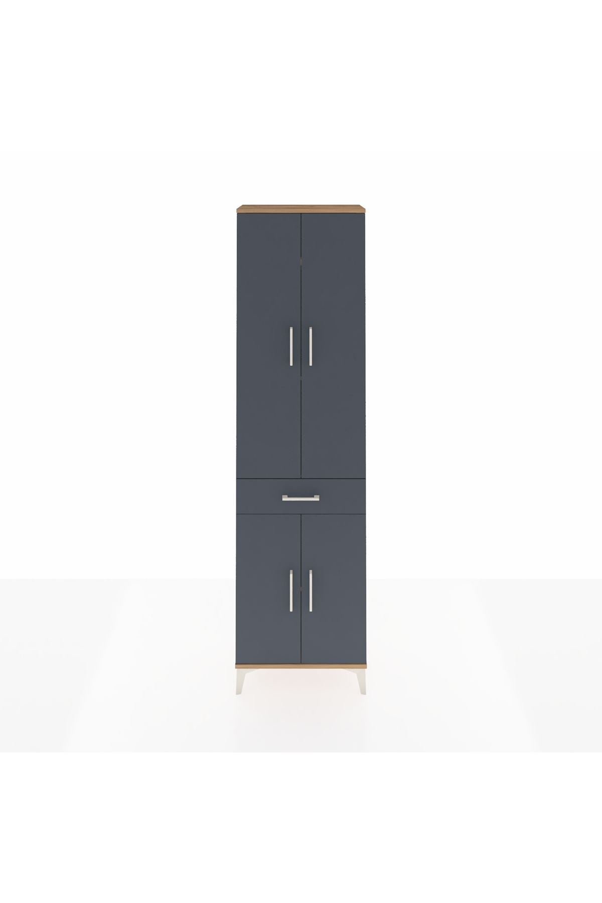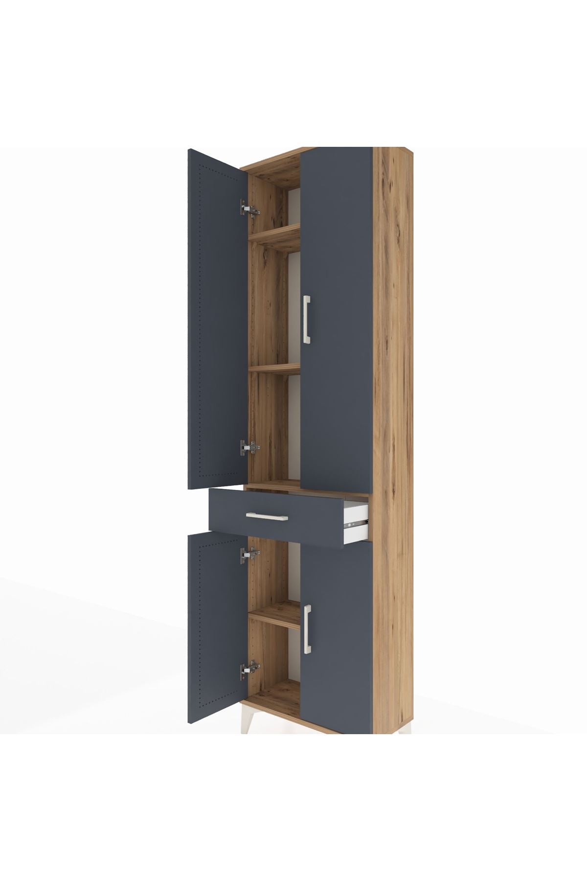 Arges Dolap 4 Raflı Tek Çekmeceli 4 Kapaklı 60x30x221 Çam-Antrasit