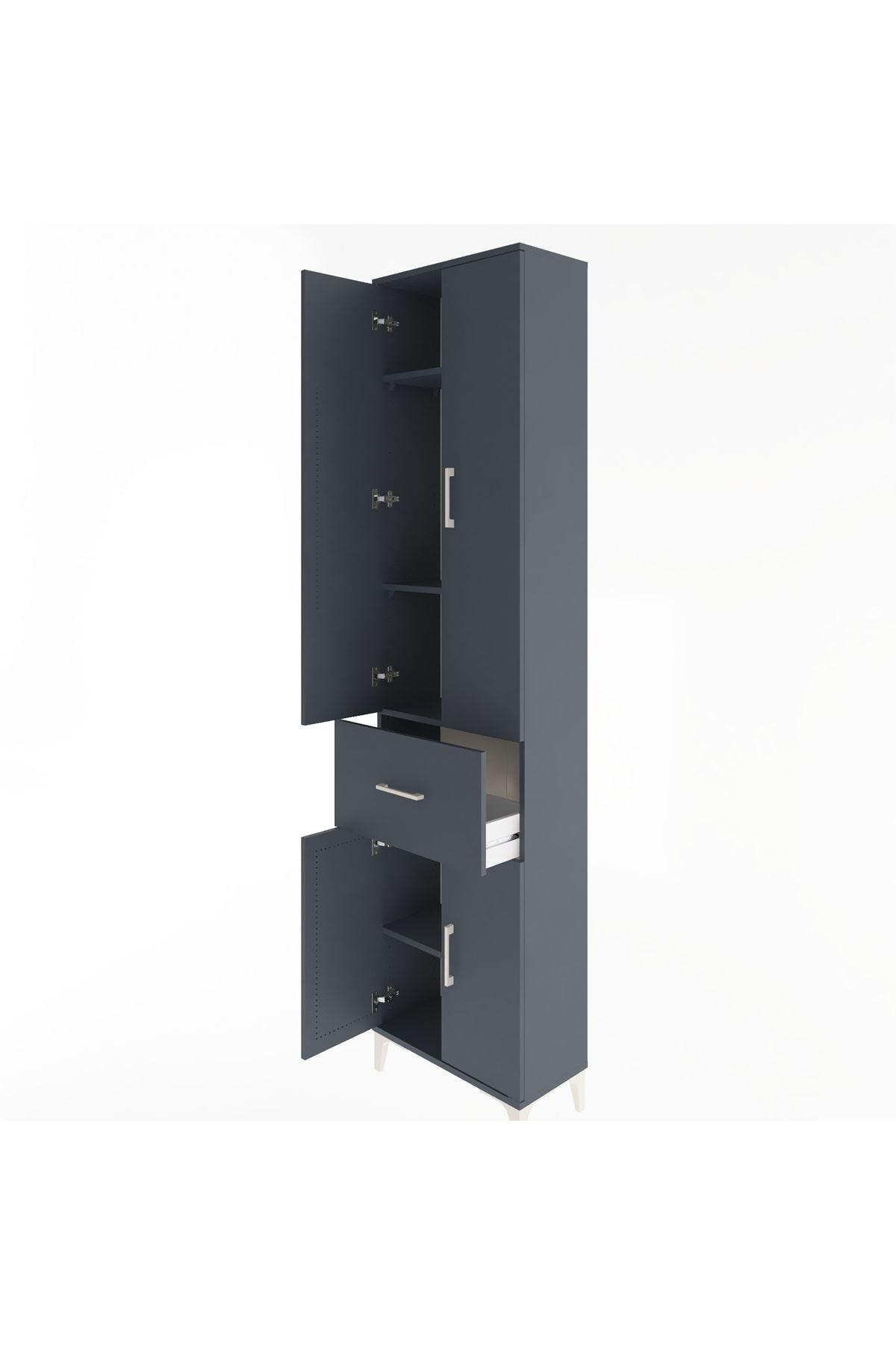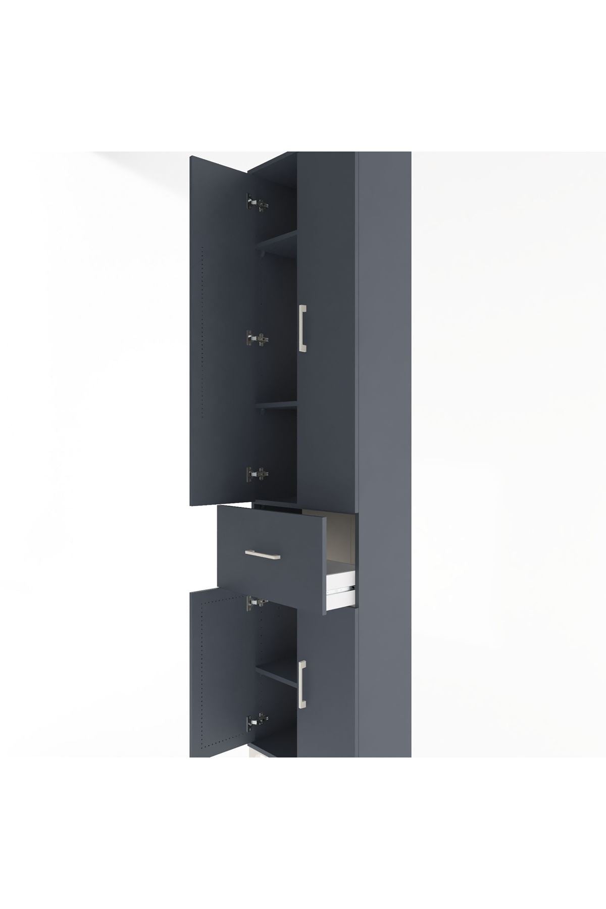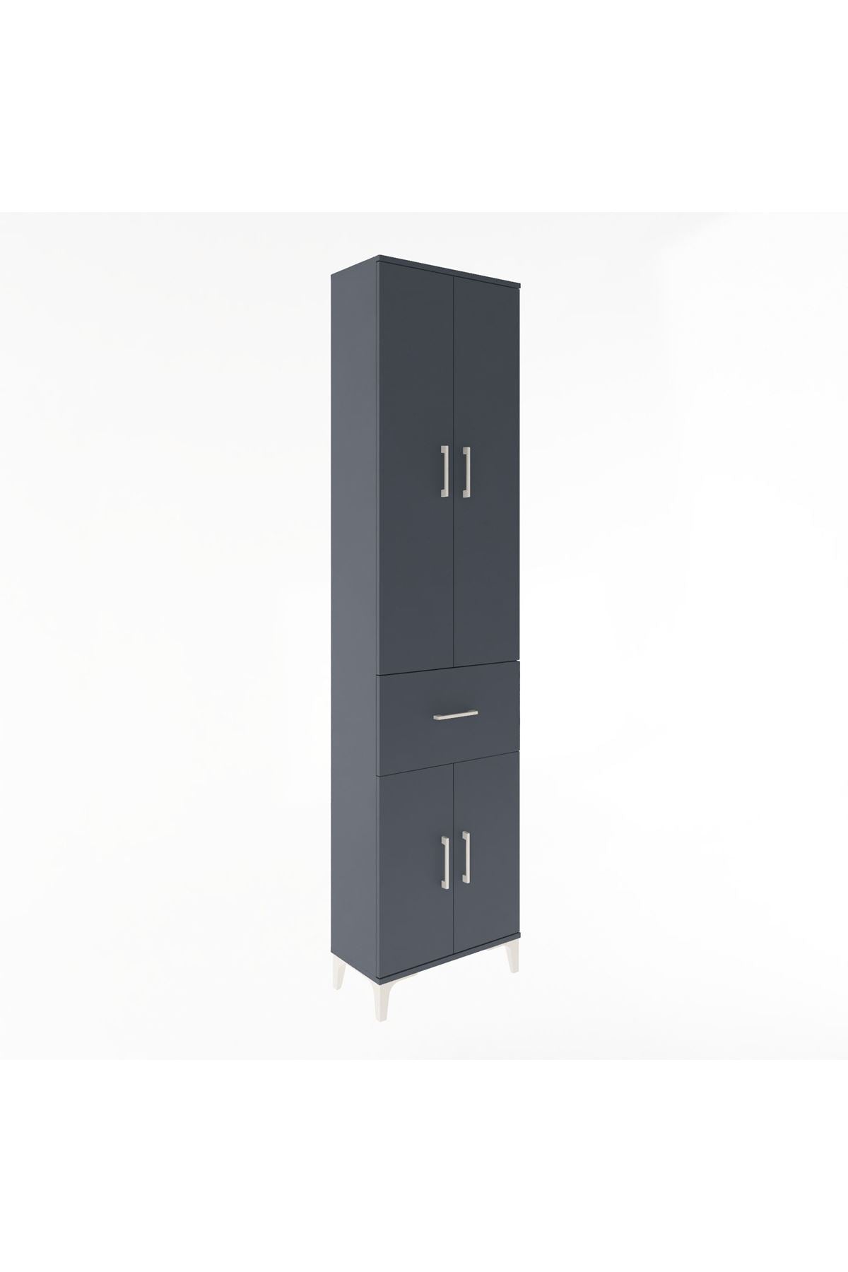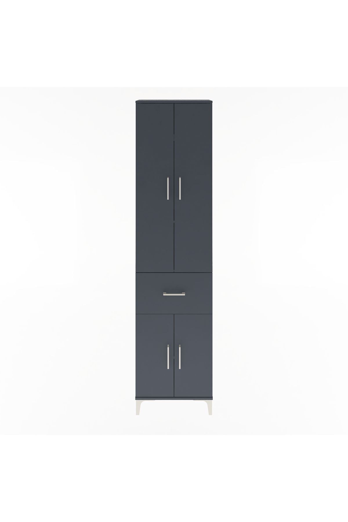 Arges Dolap 4 Raflı Tek Çekmeceli 4 Kapaklı 60x30x243 Antrasit-Antrasit