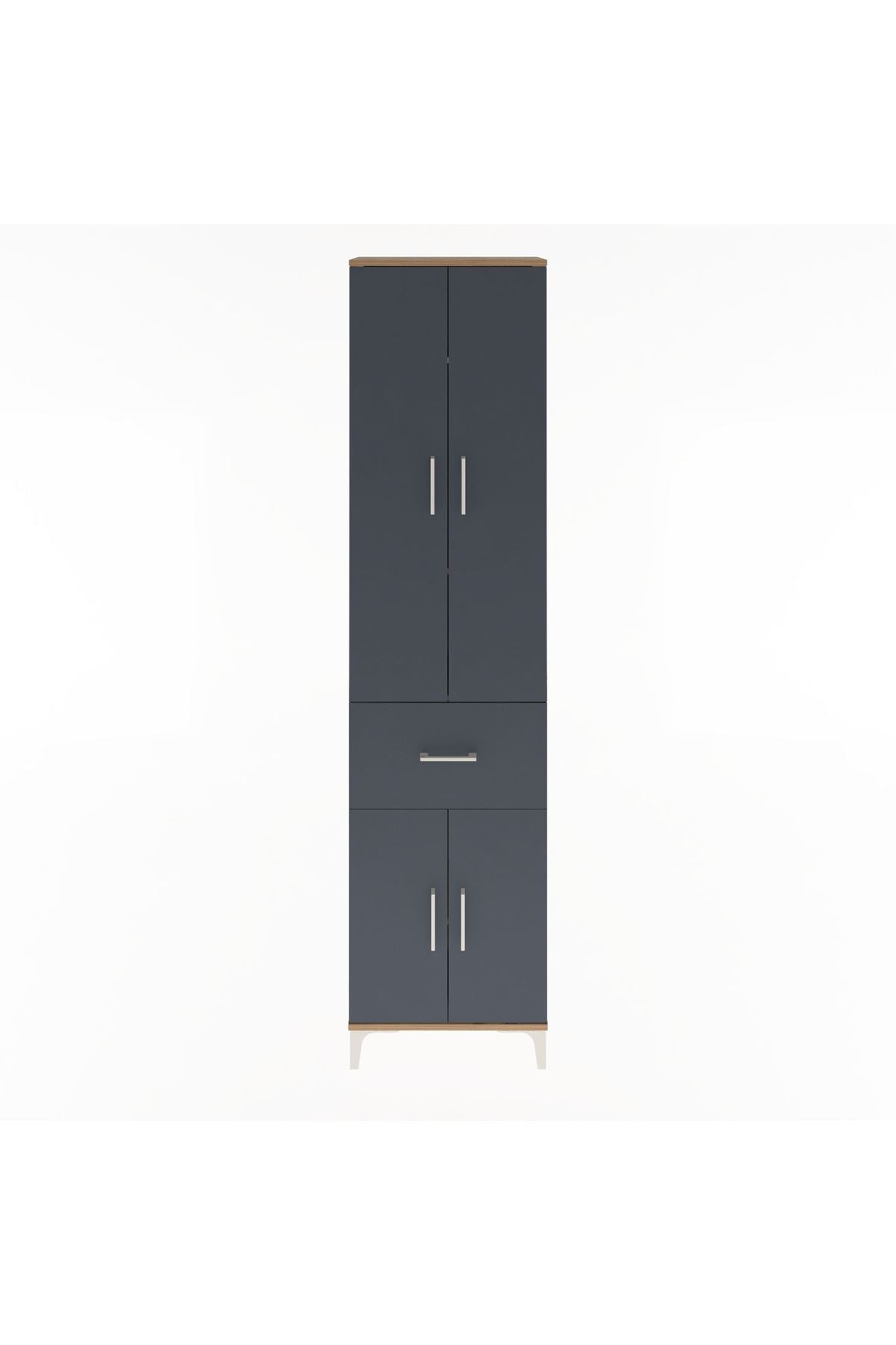 Arges Dolap 4 Raflı Tek Çekmeceli 4 Kapaklı 60x30x243 Çam-Antrasit