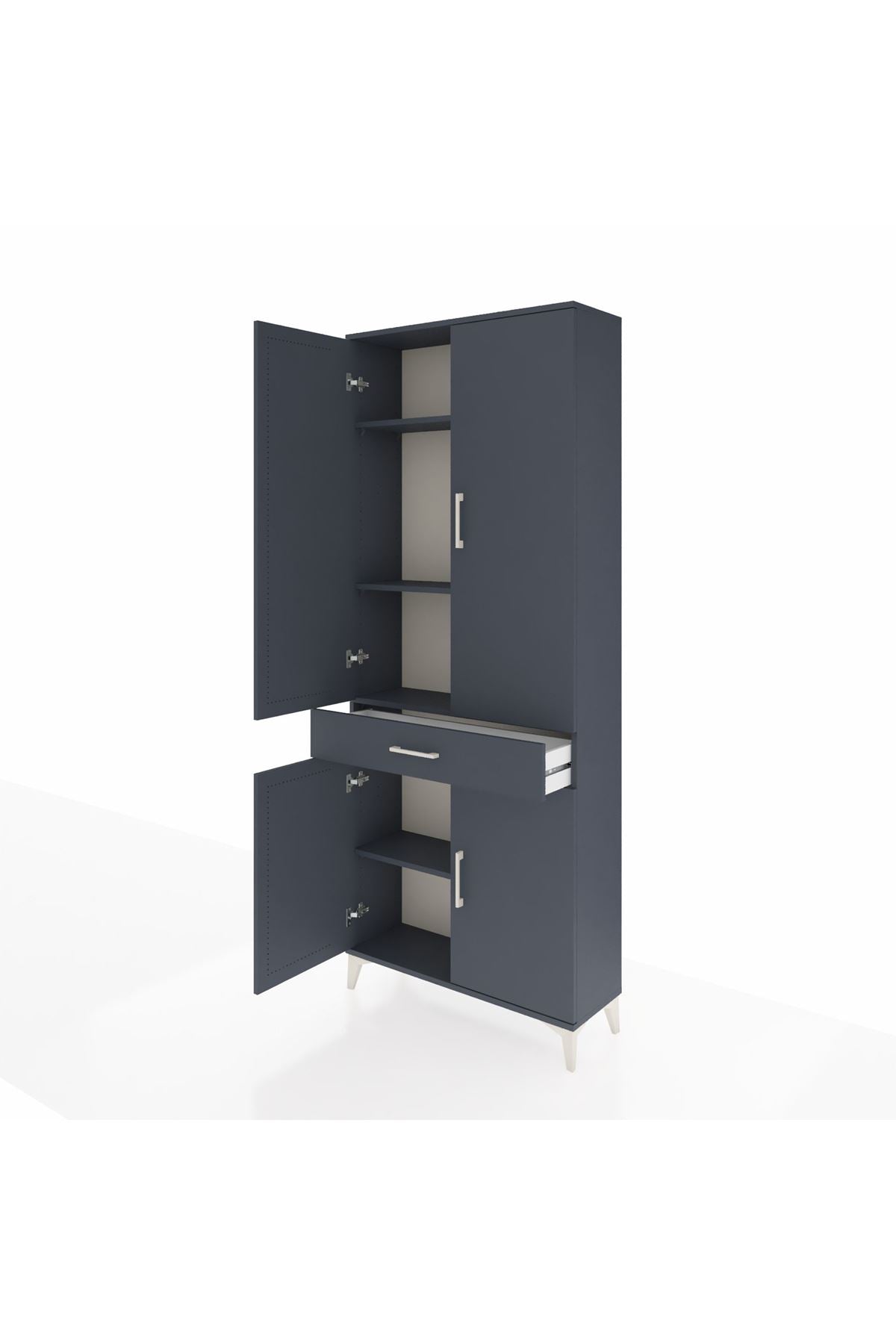 Arges Dolap 4 Raflı Tek Çekmeceli 4 Kapaklı 88x30x221 Antrasit-Antrasit