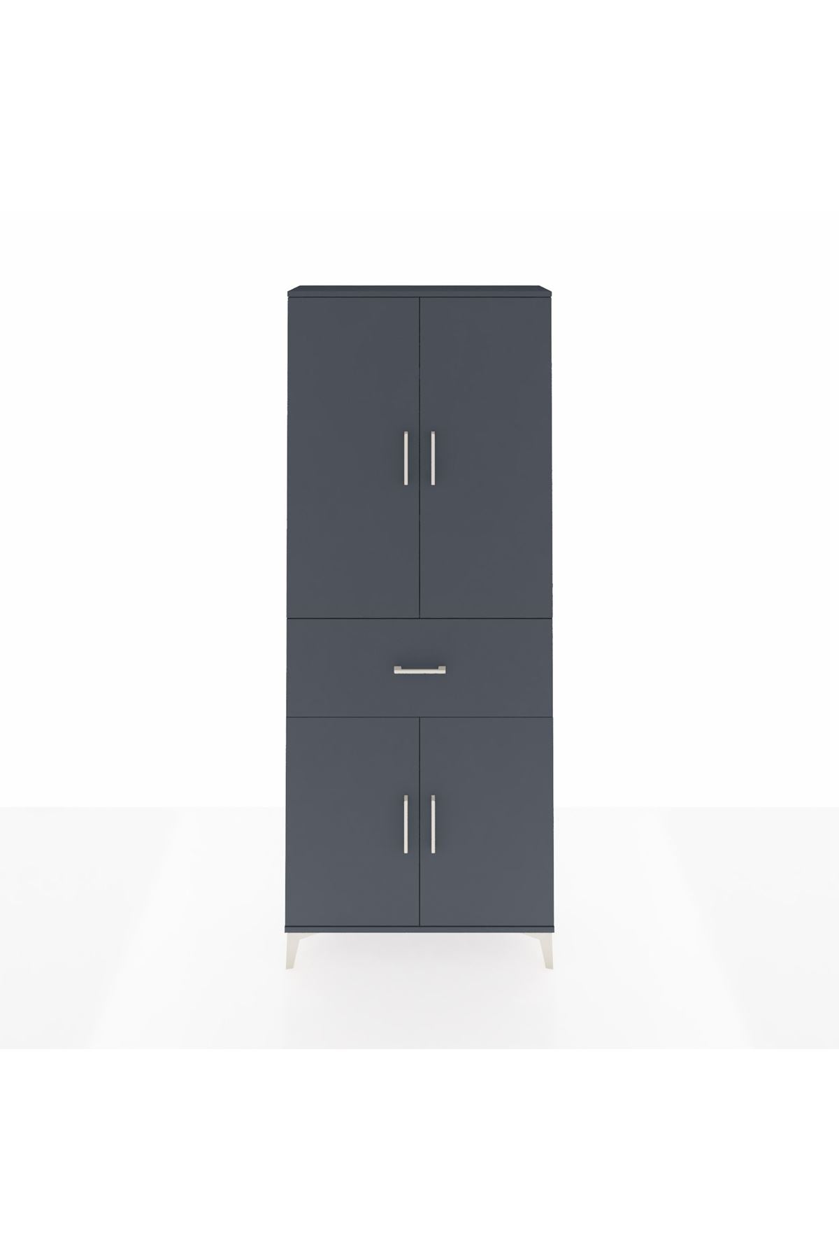 Arges Dolap 4 Raflı Tek Çekmeceli 4 Kapaklı 88x30x221 Antrasit-Antrasit