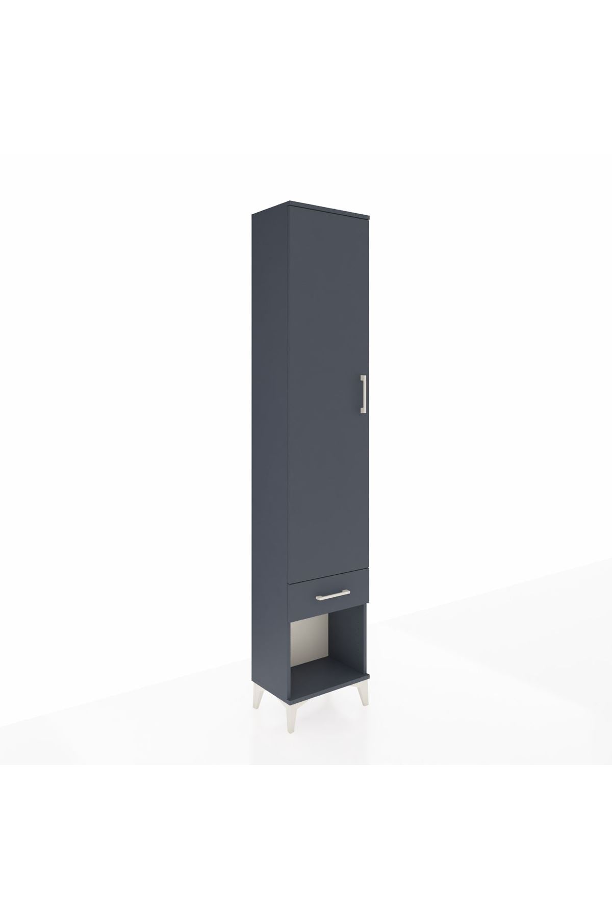 Arges Dolap 4 Raflı Tek Çekmeceli Tek Kapaklı 44x30x221 Antrasit-Antrasit