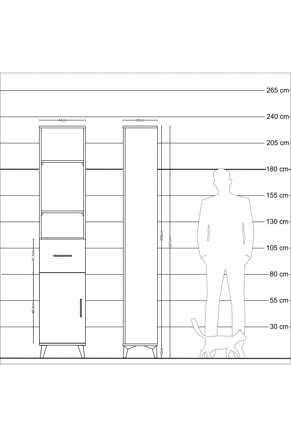 Arges Dolap 4 Raflı Tek Çekmeceli Tek Kapaklı 44x30x221 Antrasit-Antrasit