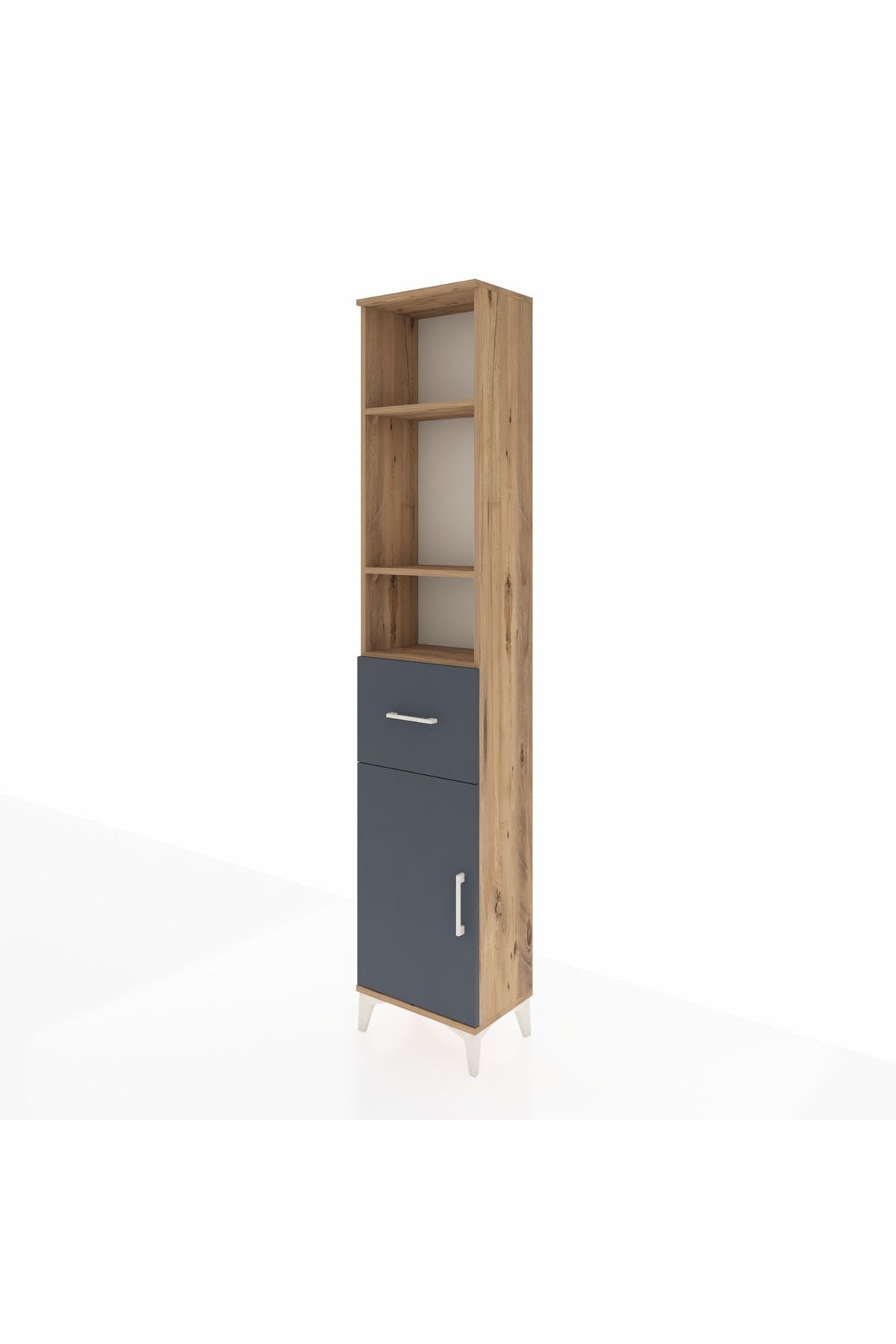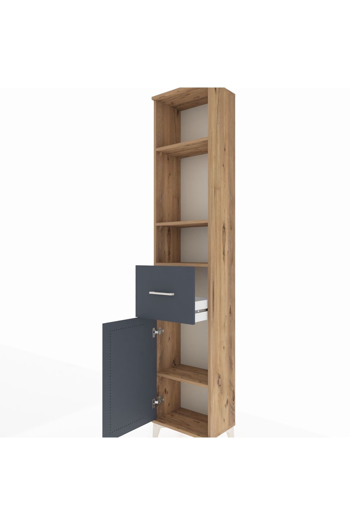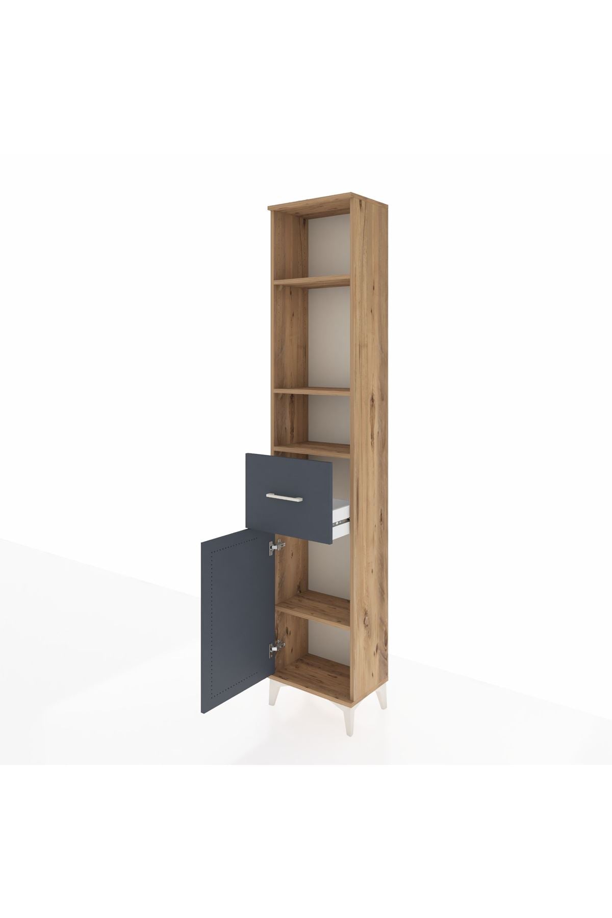 Arges Dolap 4 Raflı Tek Çekmeceli Tek Kapaklı 44x30x221 Çam-Antrasit