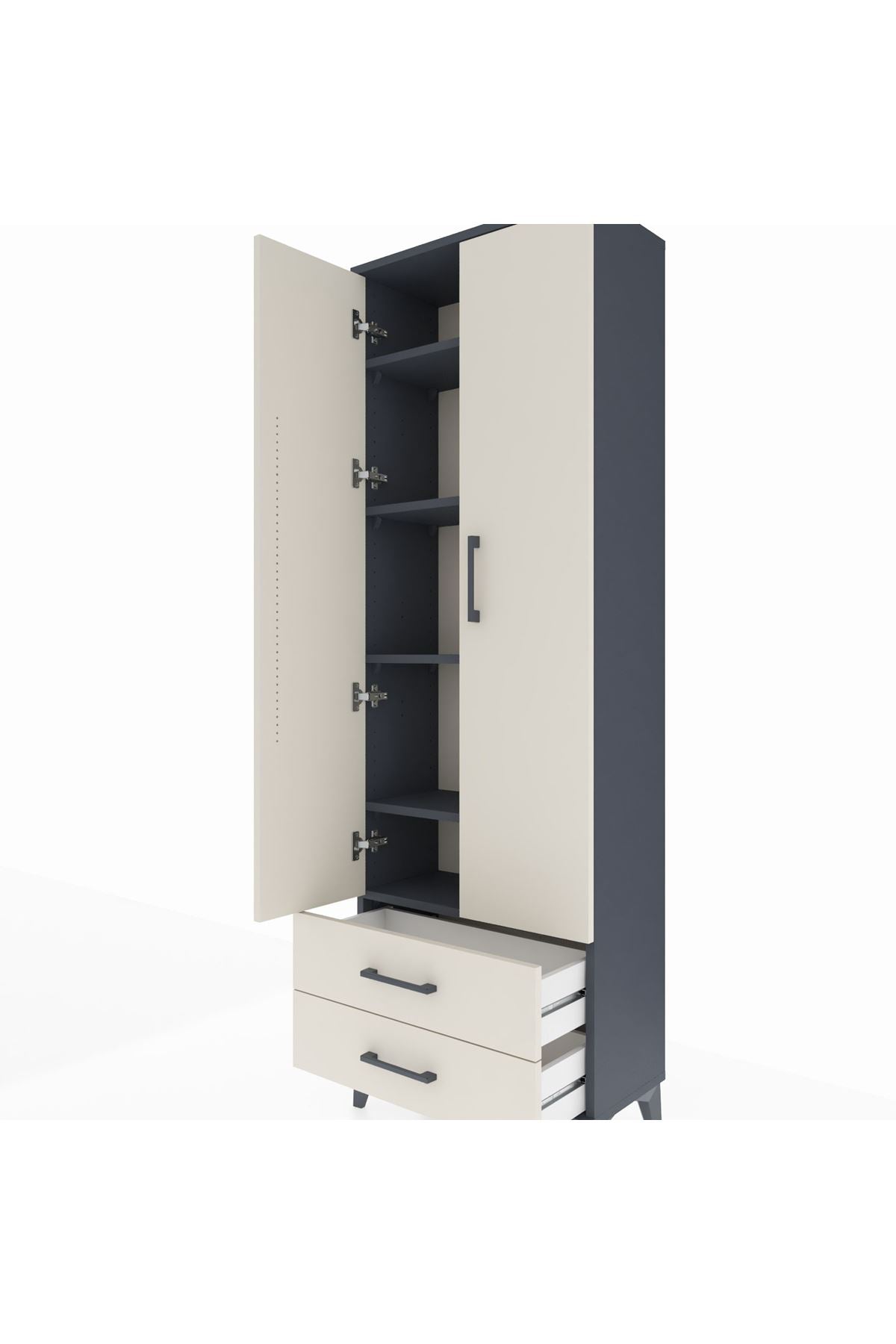 Arges Dolap 5 Raflı 2 Çekmeceli 2 Kapaklı 60x30x182 Antrasit-Aytaşı