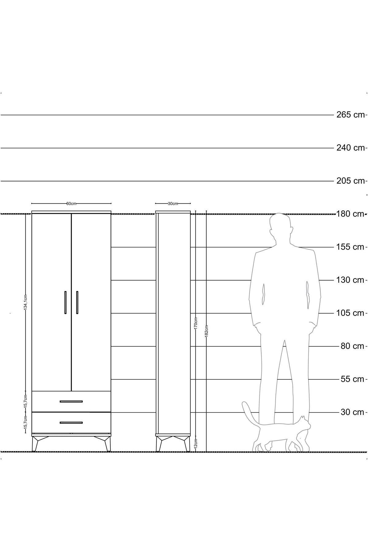 Arges Dolap 5 Raflı 2 Çekmeceli 2 Kapaklı 60x30x182 Çam-Aytaşı