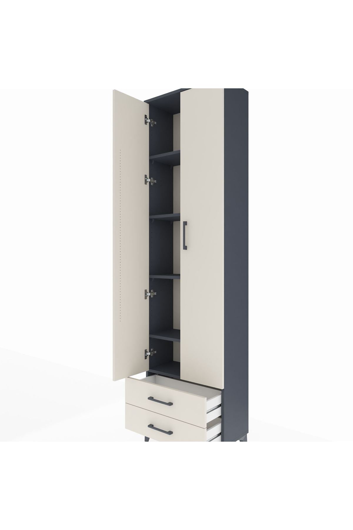 Arges Dolap 5 Raflı 2 Çekmeceli 2 Kapaklı 60x30x221 Antrasit-Aytaşı