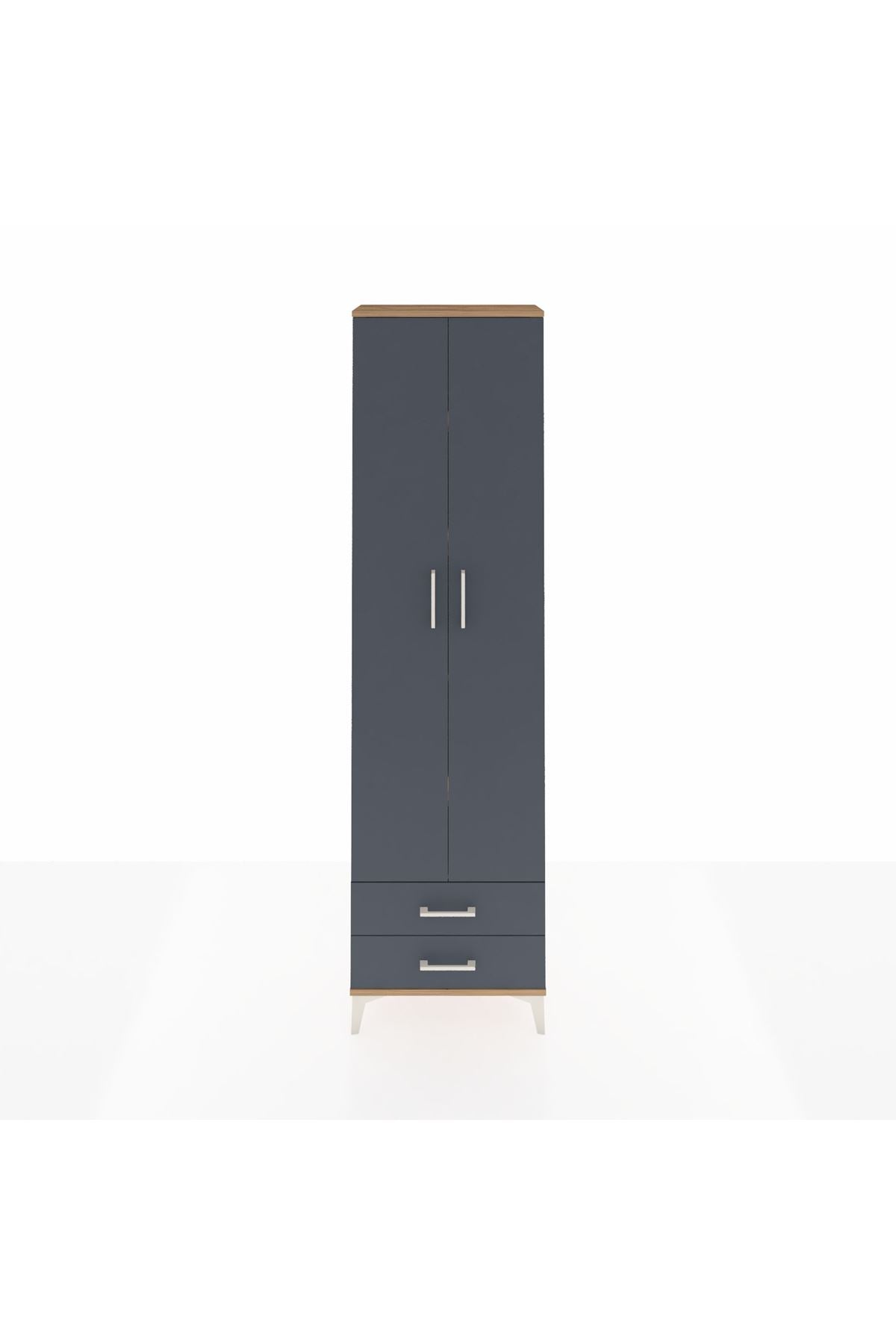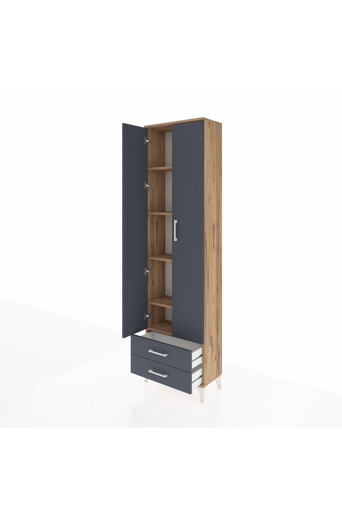 Arges Dolap 5 Raflı 2 Çekmeceli 2 Kapaklı 60x30x221 Çam-Antrasit