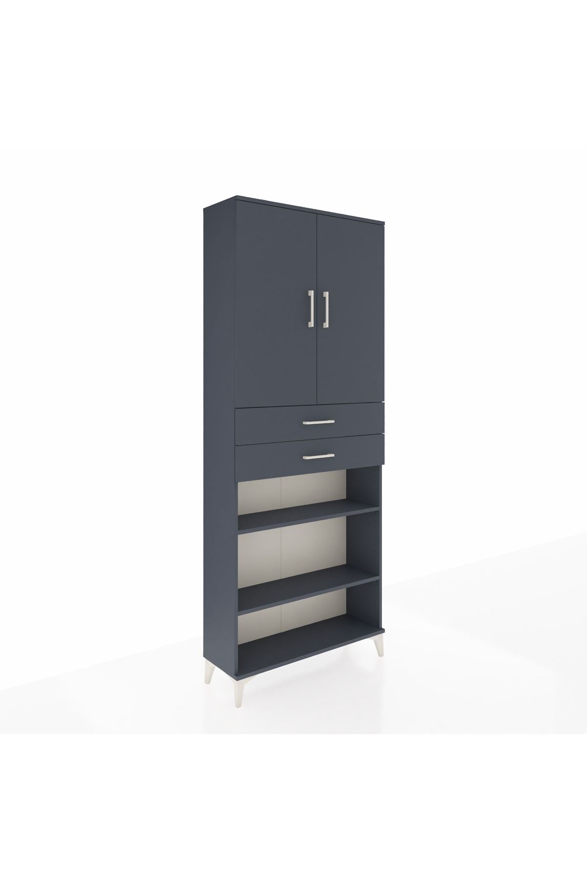 Arges Dolap 5 Raflı 2 Çekmeceli 2 Kapaklı 88x30x221 Antrasit-Antrasit