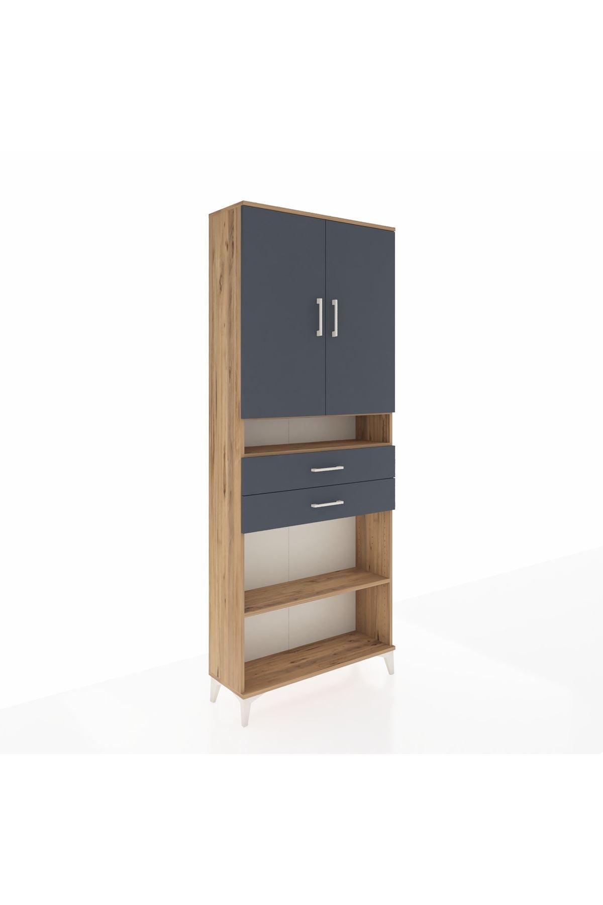 Arges Dolap 5 Raflı 2 Çekmeceli 2 Kapaklı 88x30x221 Çam-Antrasit