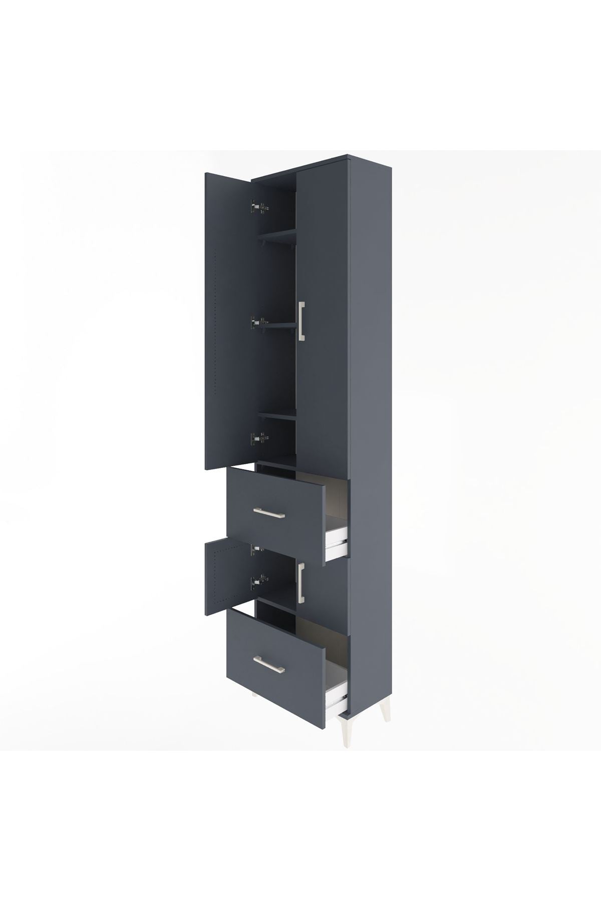 Arges Dolap 5 Raflı 2 Çekmeceli 4 Kapaklı 60x30x243 Antrasit-Antrasit