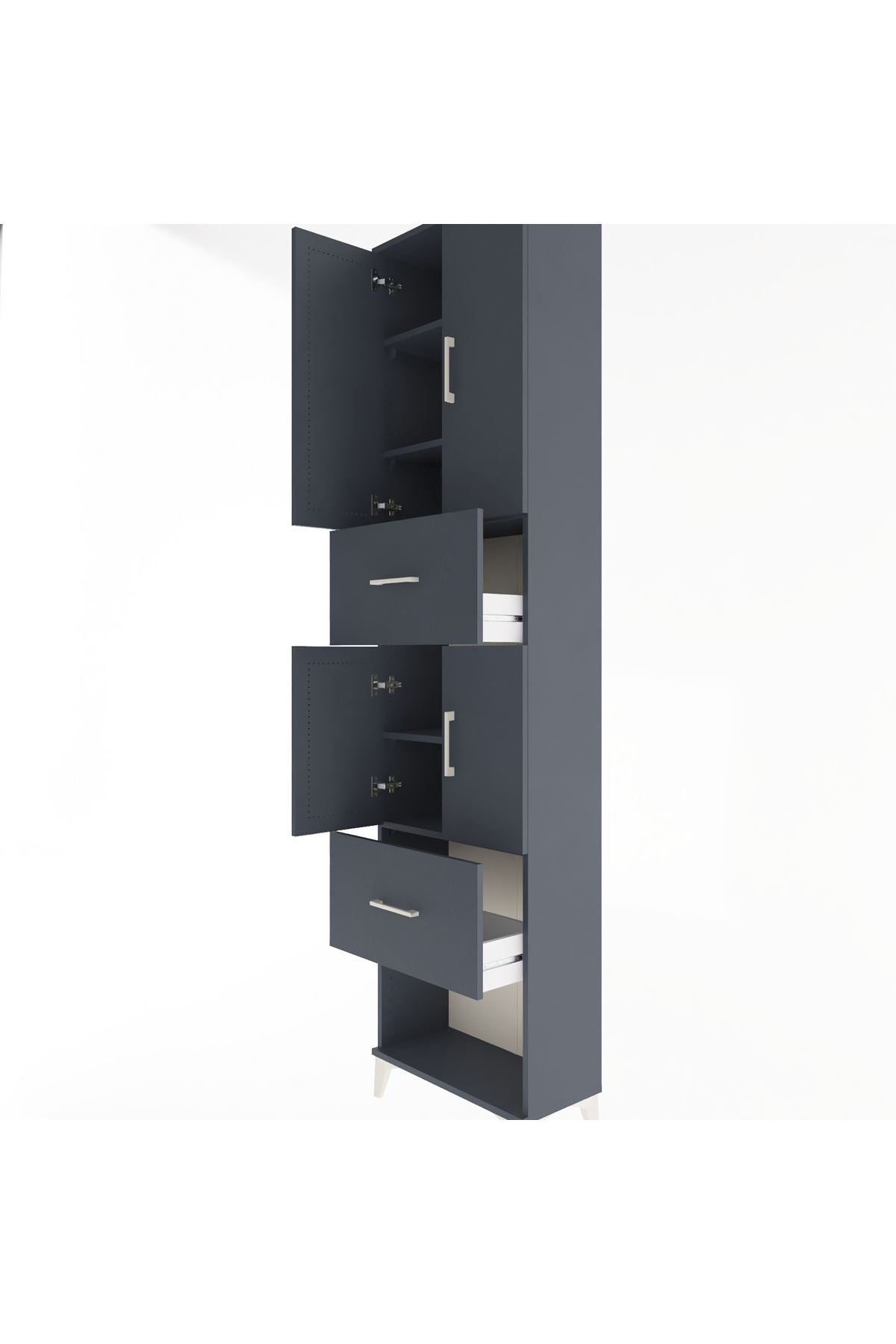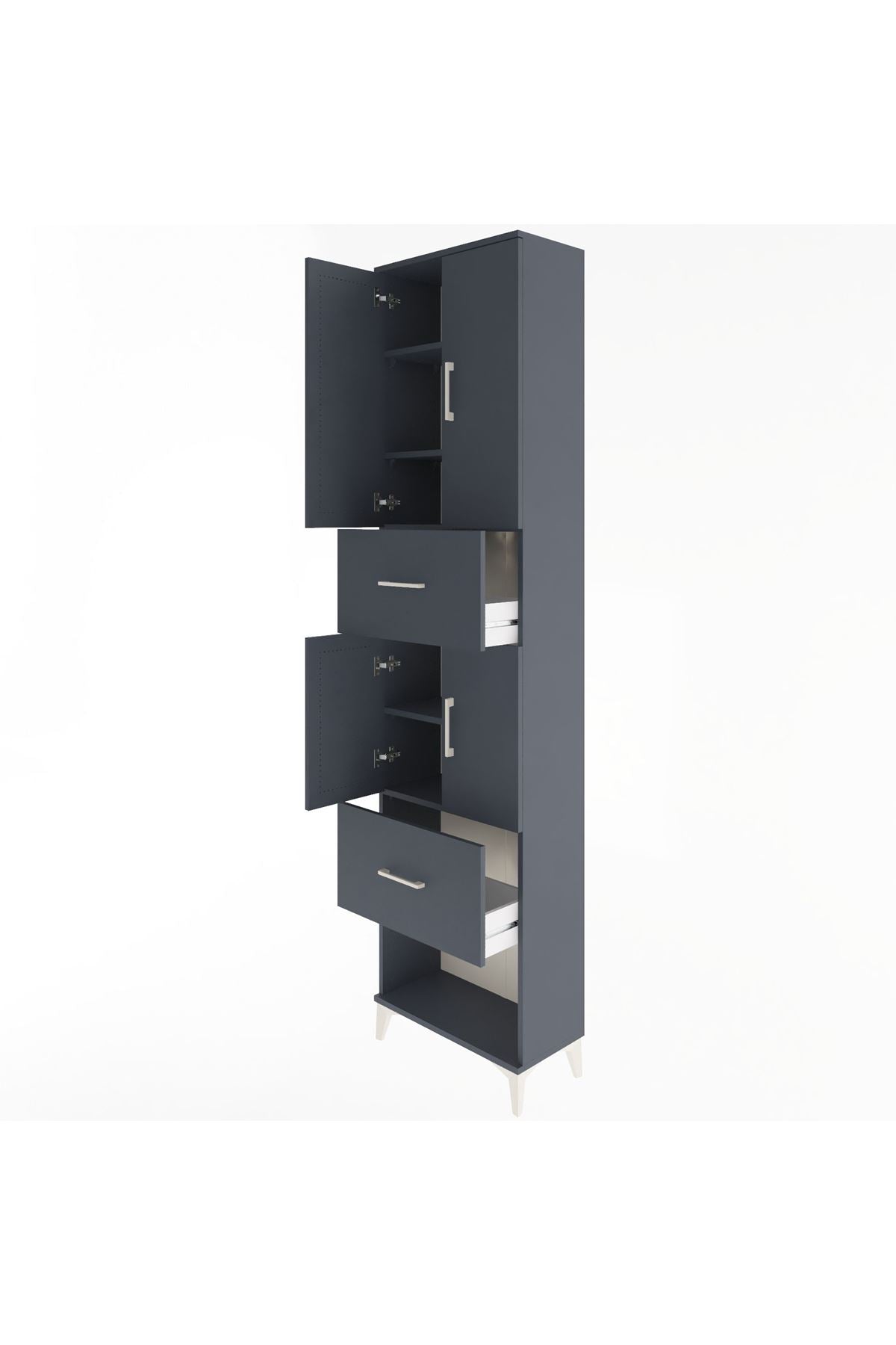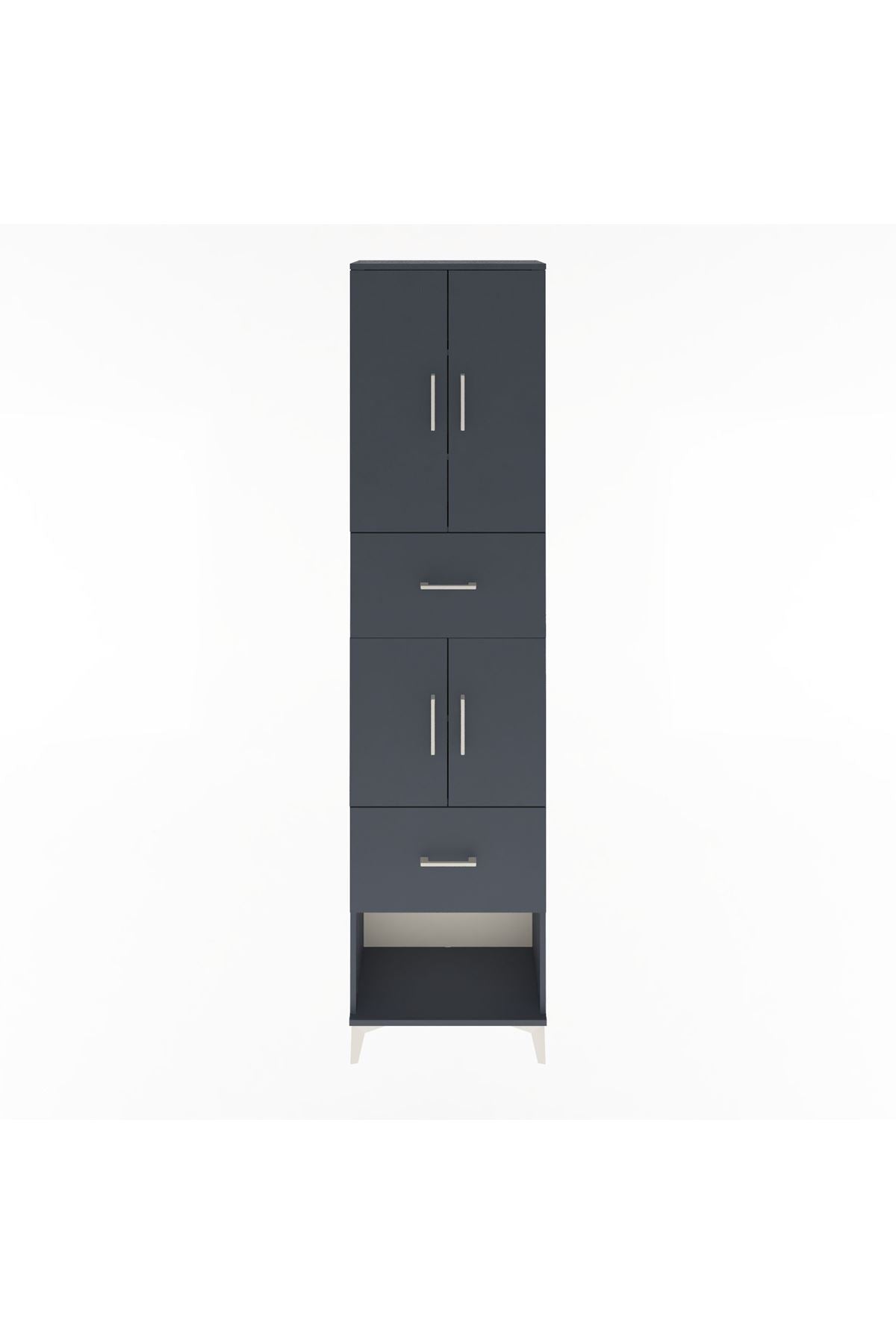 Arges Dolap 5 Raflı 2 Çekmeceli 4 Kapaklı 60x30x243 Antrasit-Antrasit