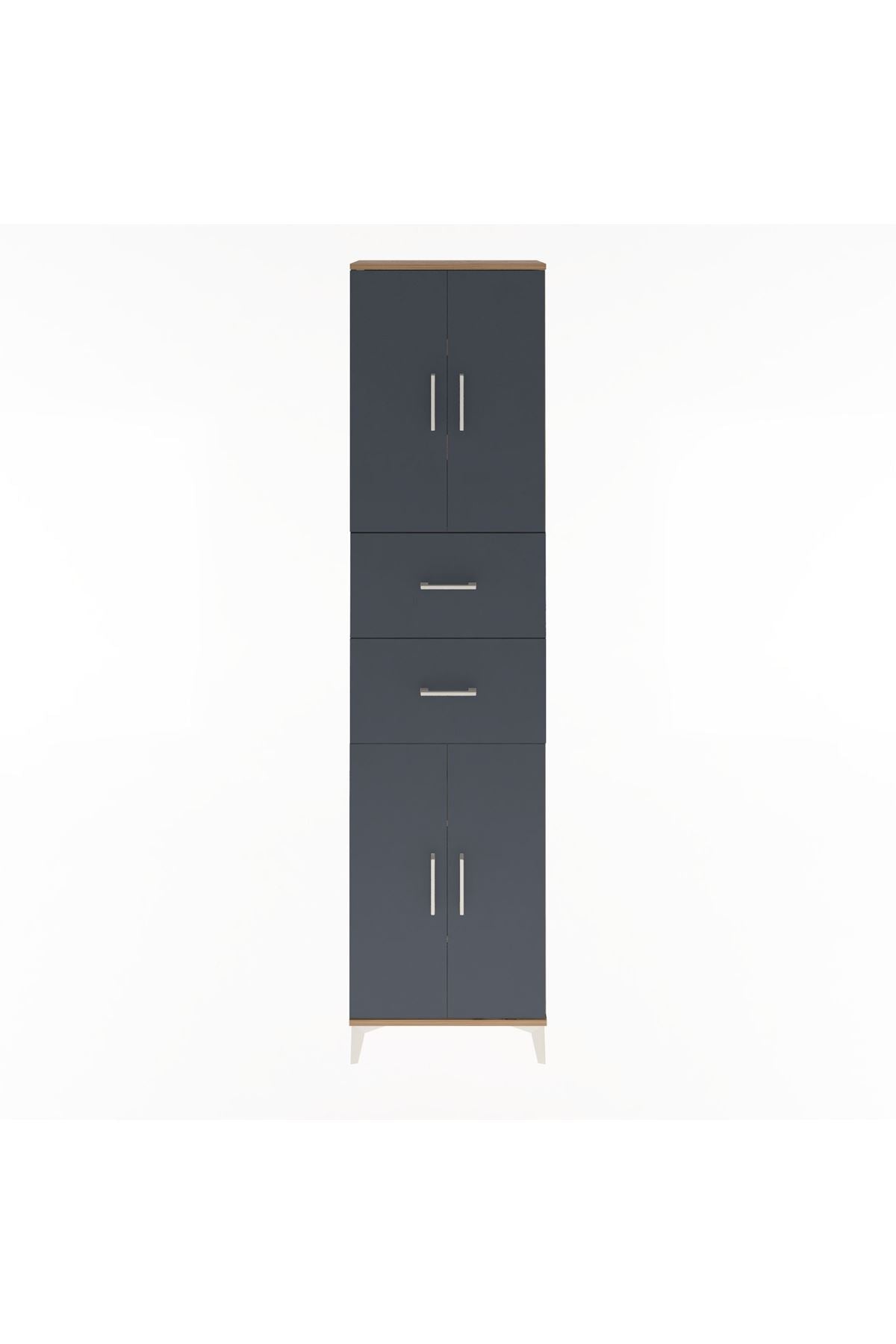 Arges Dolap 5 Raflı 2 Çekmeceli 4 Kapaklı 60x30x243 Çam-Antrasit