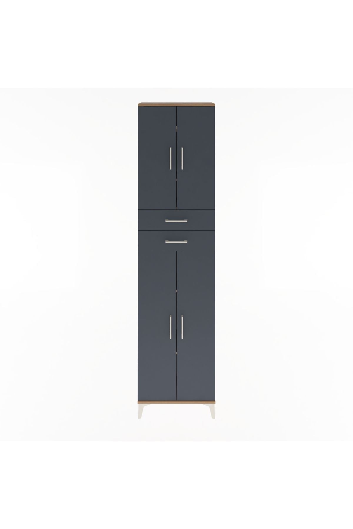 Arges Dolap 5 Raflı 2 Çekmeceli 4 Kapaklı 60x30x243 Çam-Antrasit
