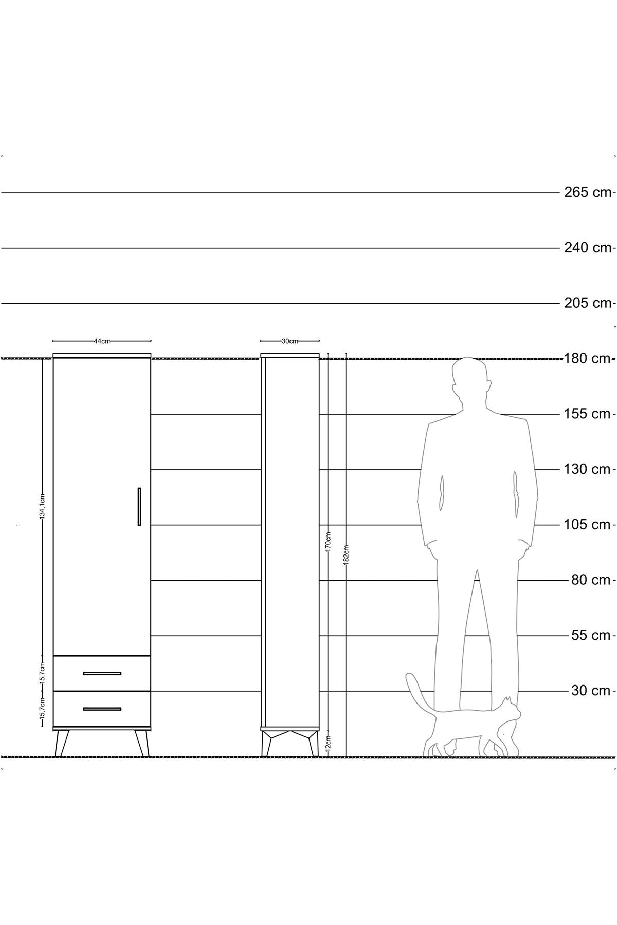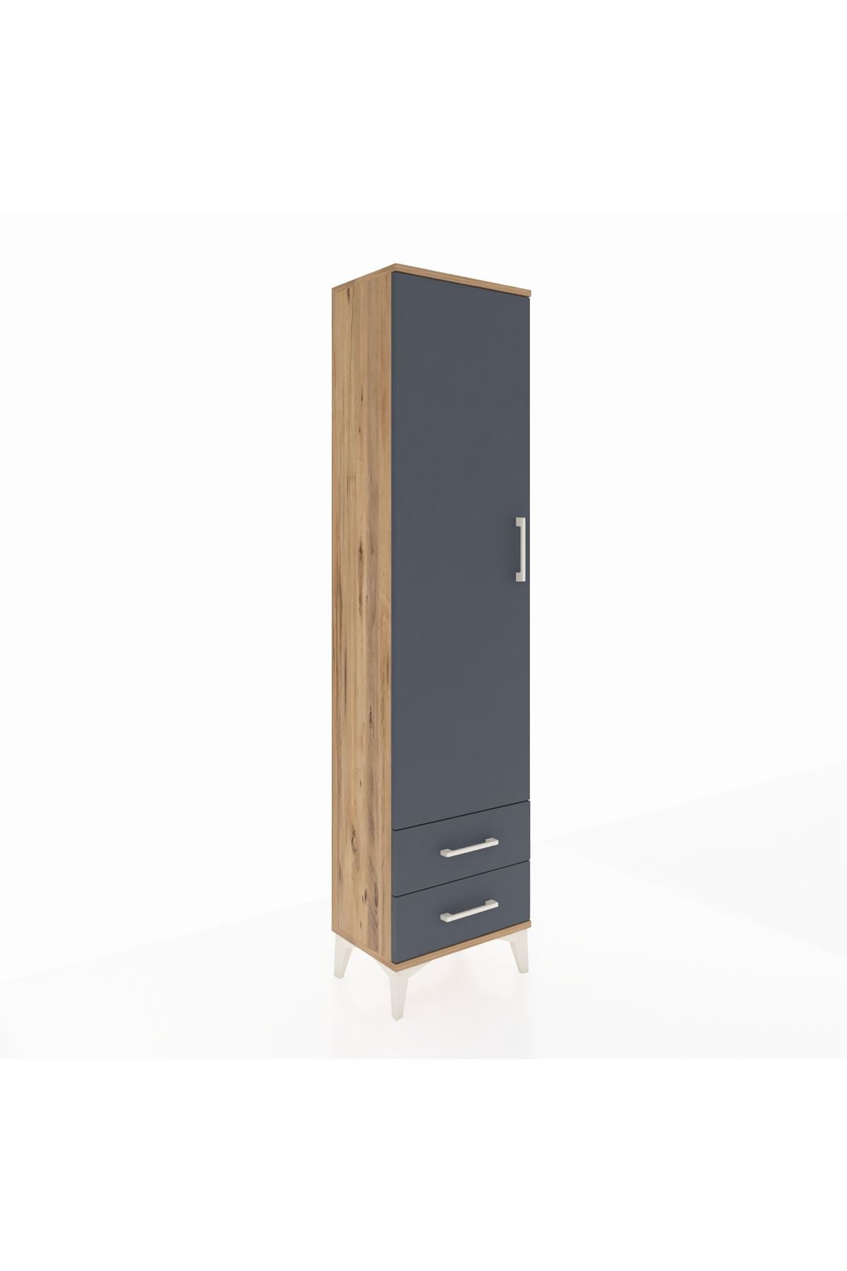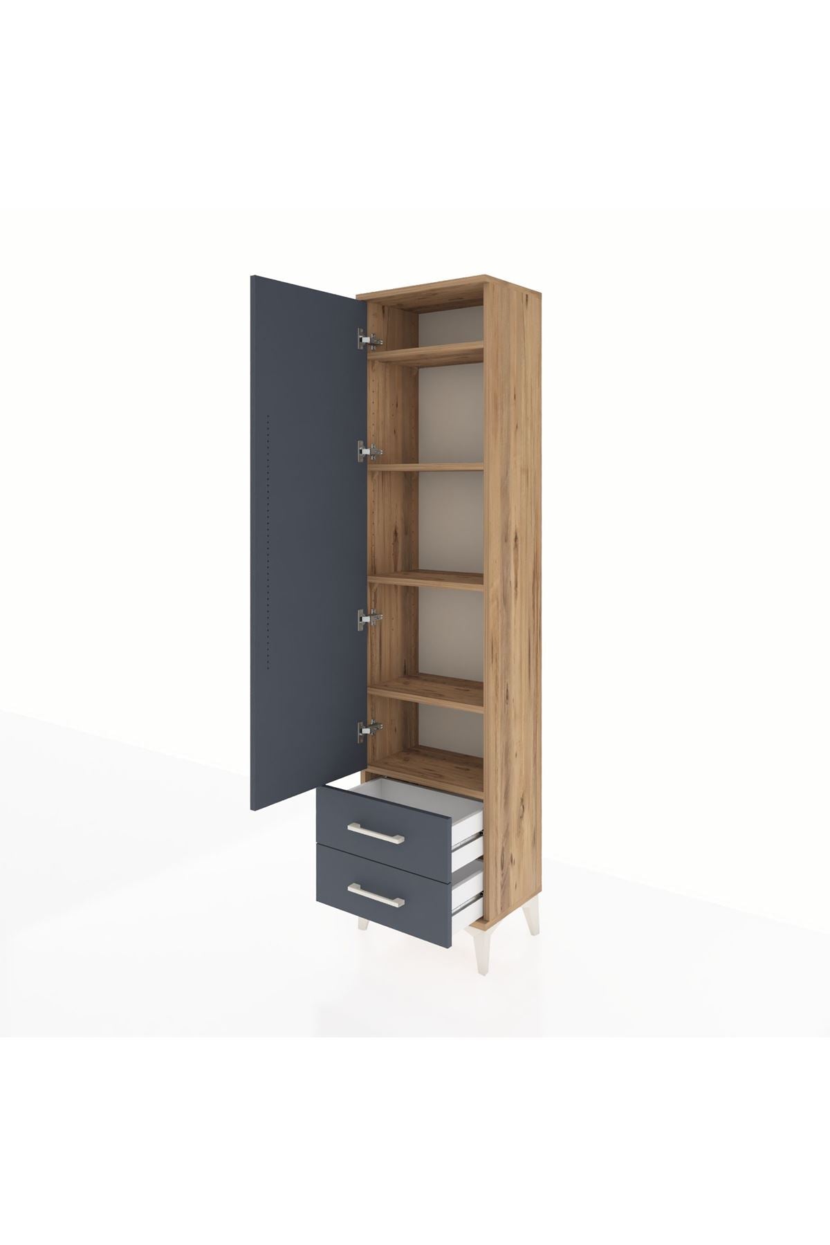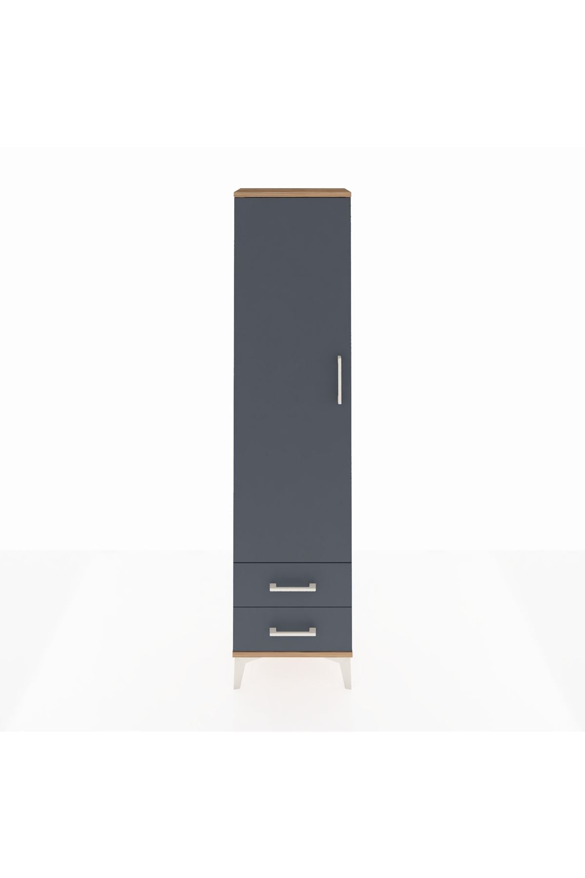 Arges Dolap 5 Raflı 2 Çekmeceli Tek Kapaklı 44x30x182 Çam-Antrasit