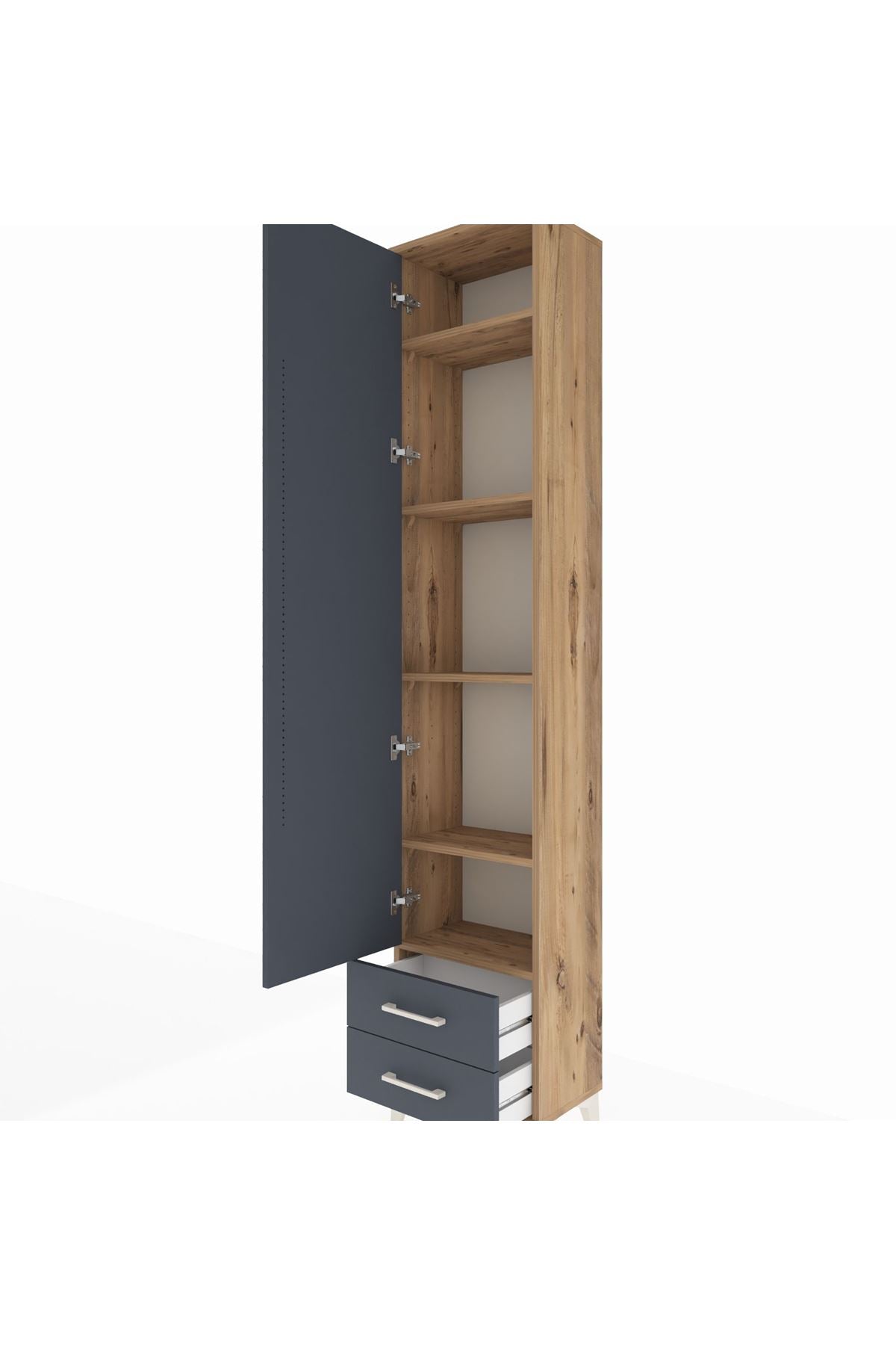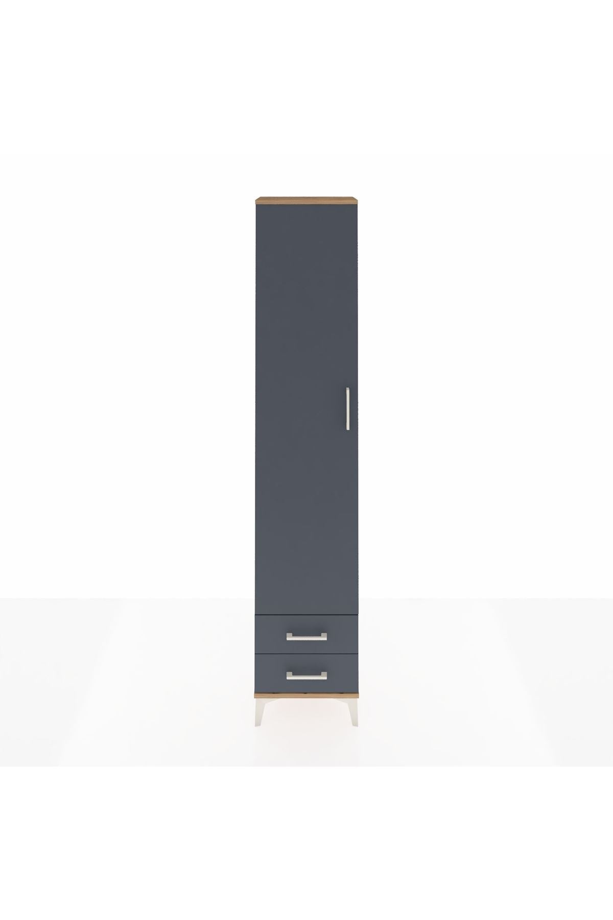 Arges Dolap 5 Raflı 2 Çekmeceli Tek Kapaklı 44x30x221 Çam-Antrasit