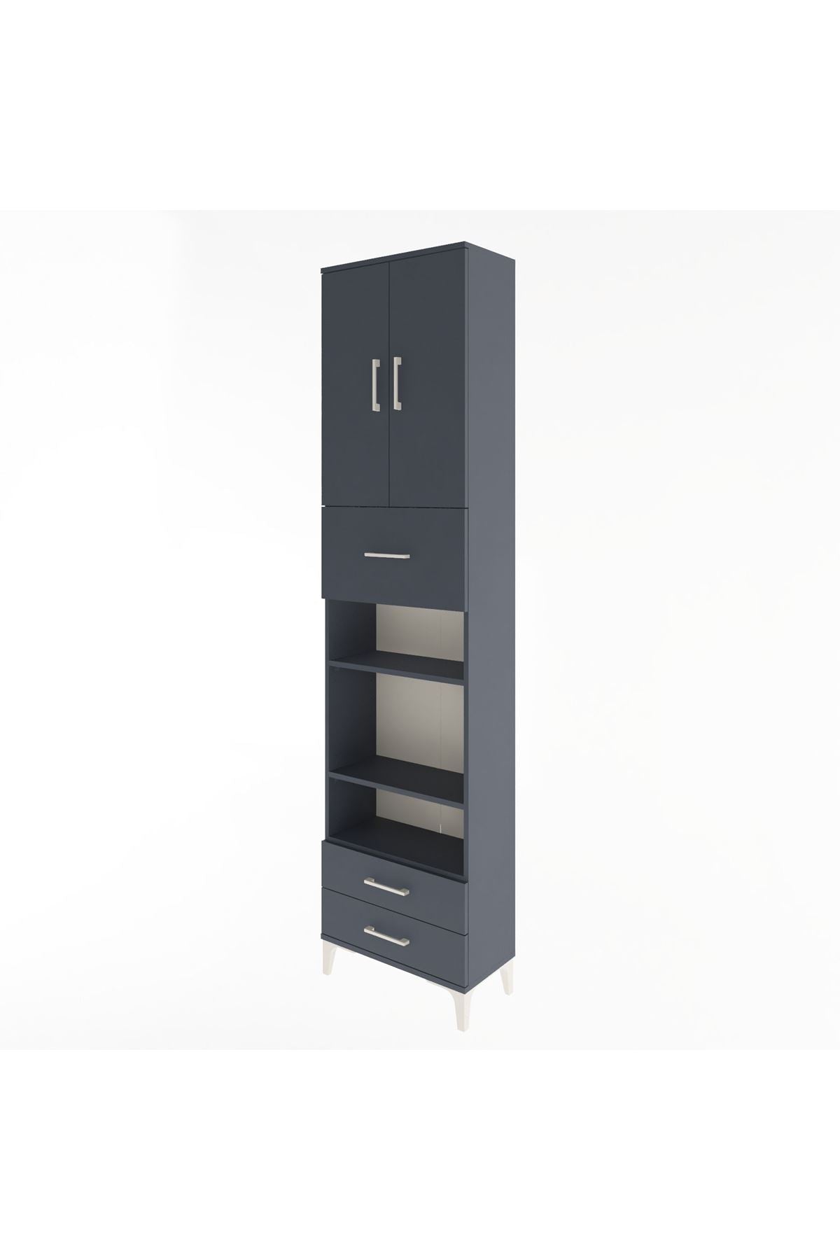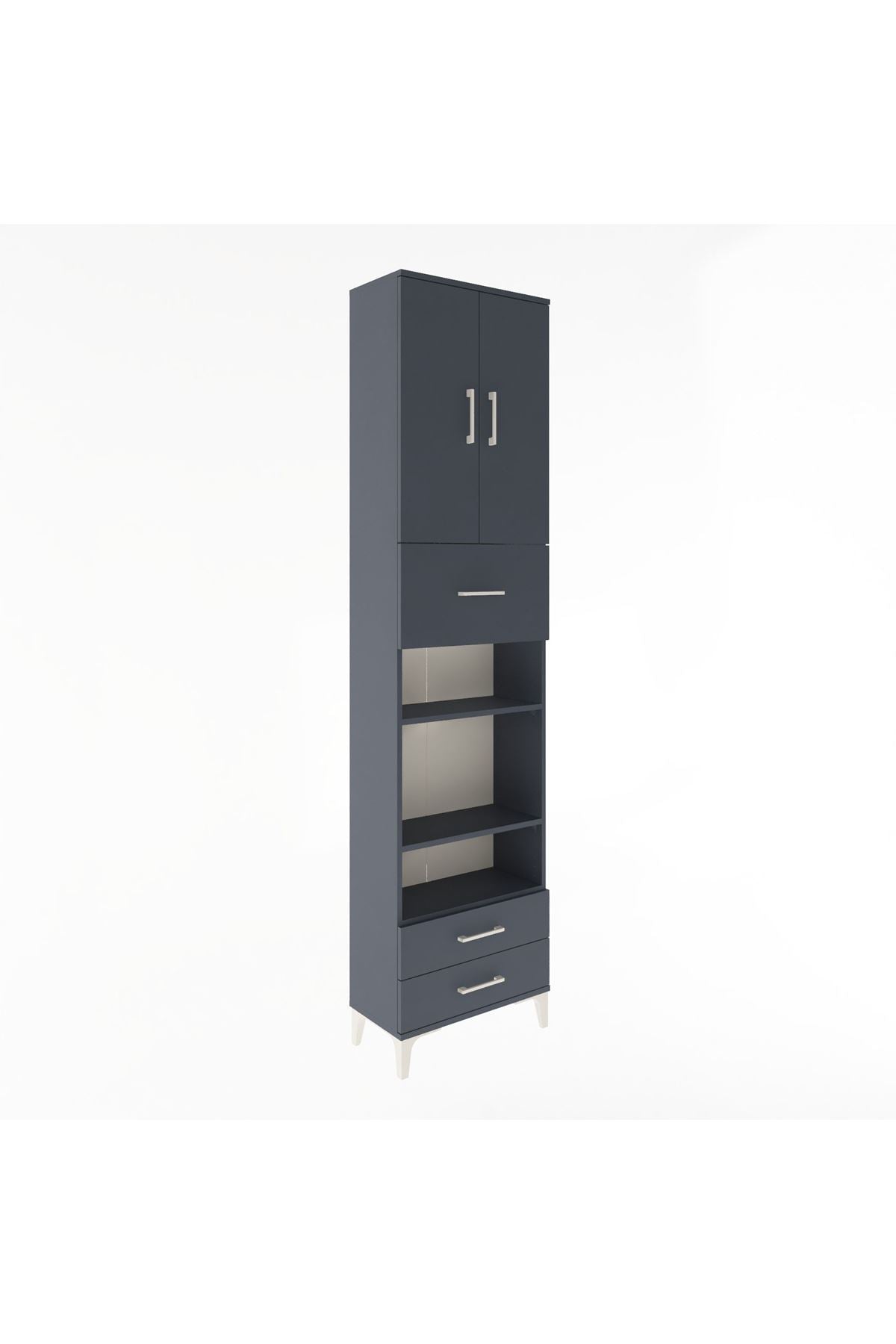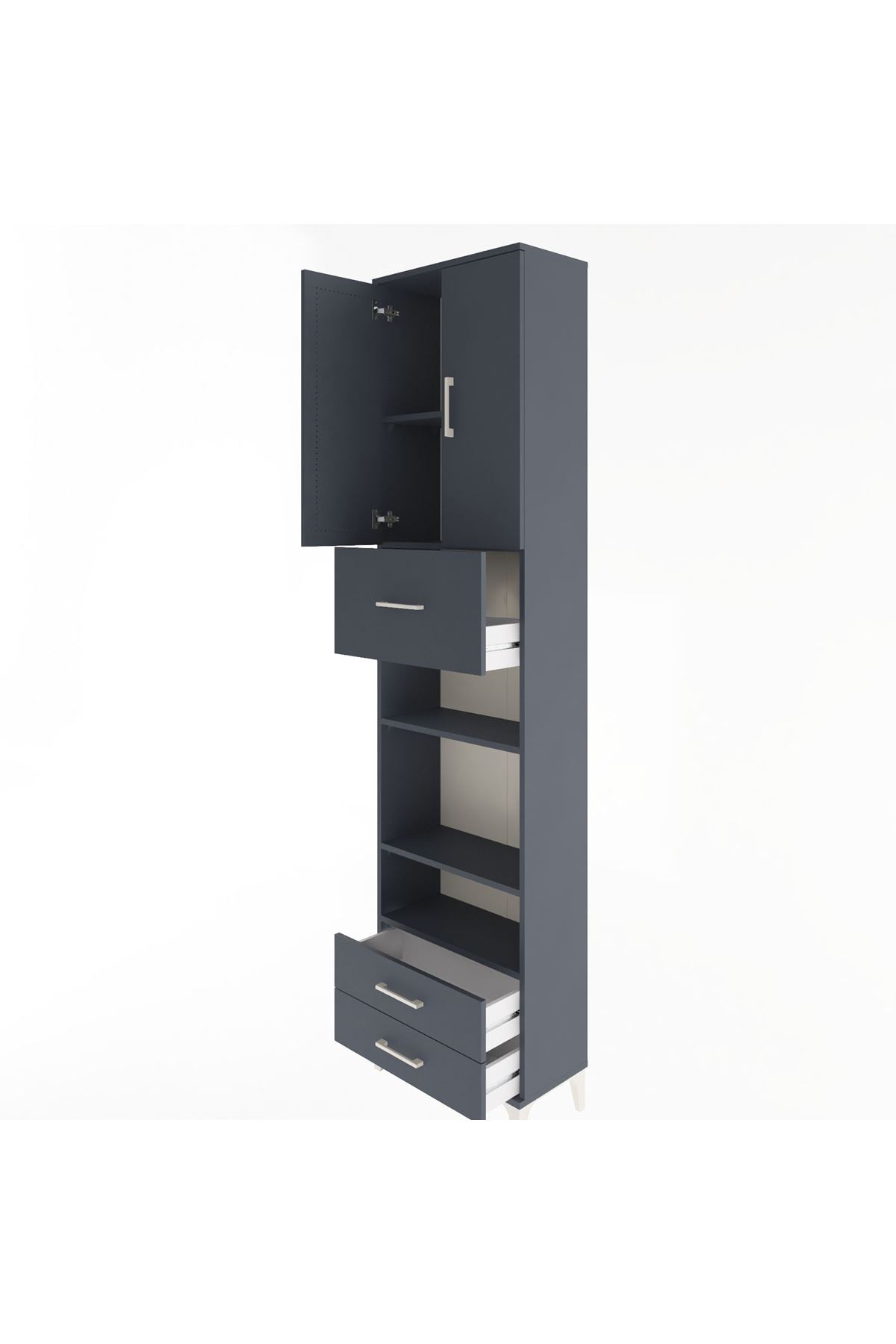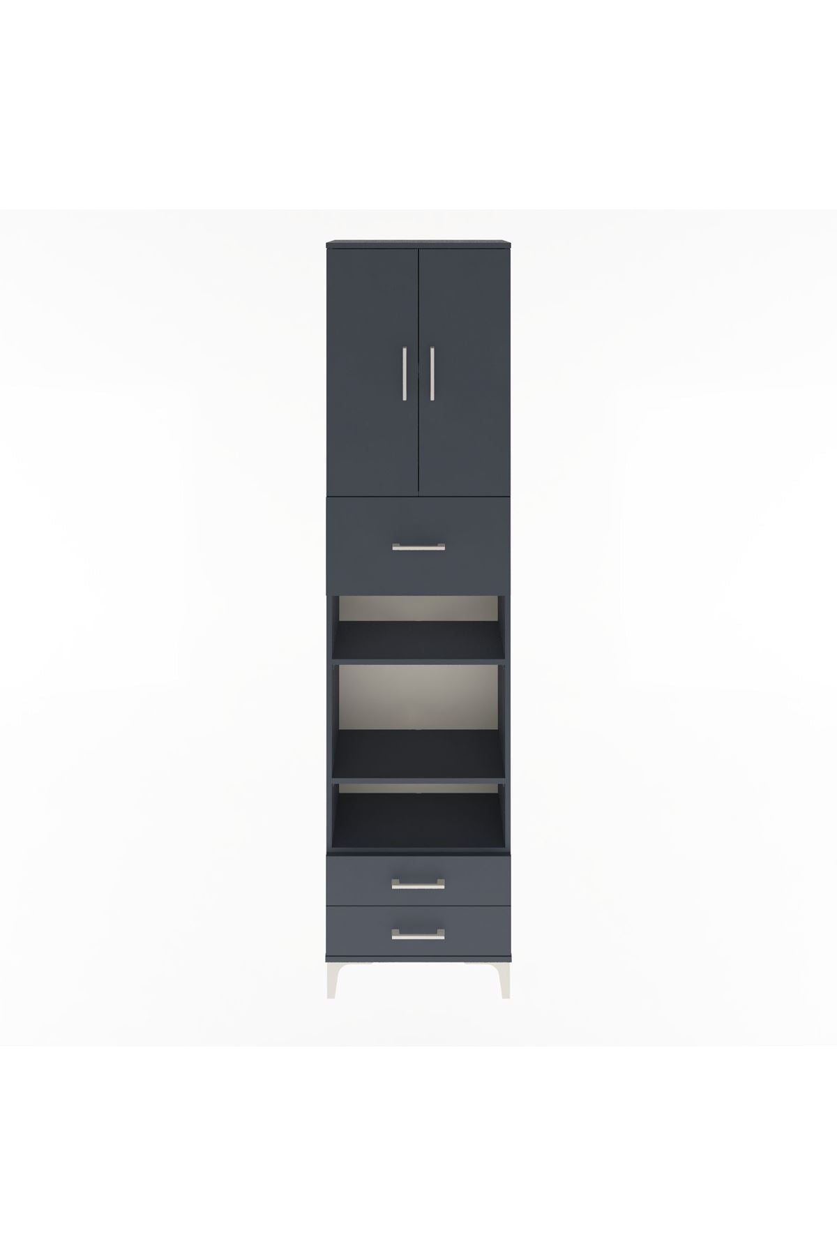 Arges Dolap 5 Raflı 3 Çekmeceli 2 Kapaklı 60x30x243 Antrasit-Antrasit